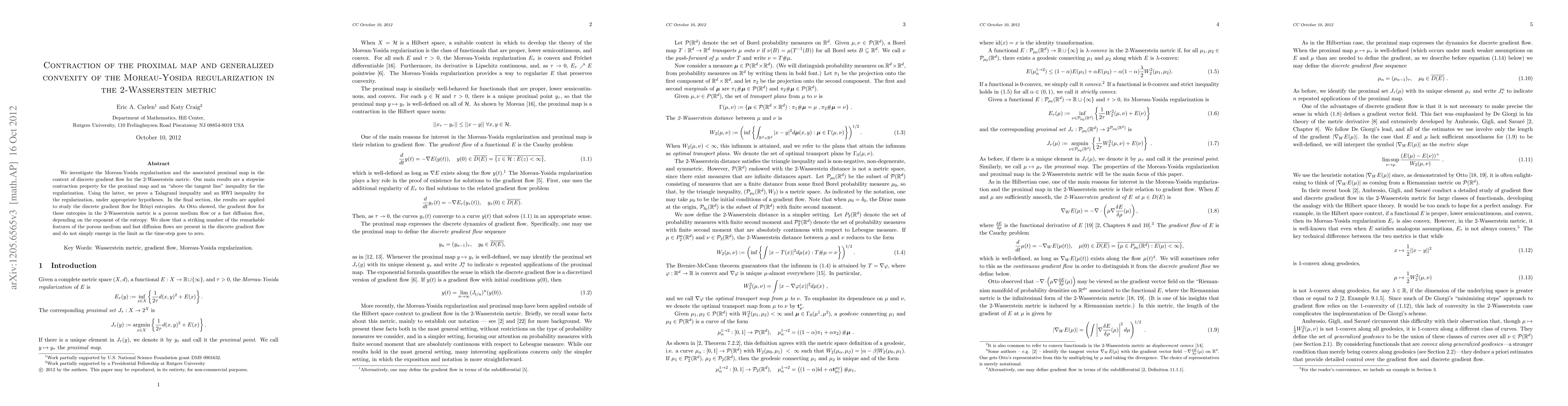 We investigate the Moreau-Yosida regularization and the associated proximal map in the context of discrete gradient flow for the 2-Wasserstein metric. Our main results are a stepwise contraction property for the proximal map and an "above the tangent line" inequality for the regularization. Using the latter, we prove a Talagrand inequality and an HWI inequality for the regularization, under appropriate hypotheses. In the final section, the results are applied to study the discrete gradient flow for R\'enyi entropies. As Otto showed, the gradient flow for these entropies in the 2-Wasserstein metric is a porous medium flow or a fast diffusion flow, depending on the exponent of the entropy. We show that a striking number of the remarkable features of the porous medium and fast diffusion flows are present in the discrete gradient flow and do not simply emerge in the limit as the time-step goes to zero.