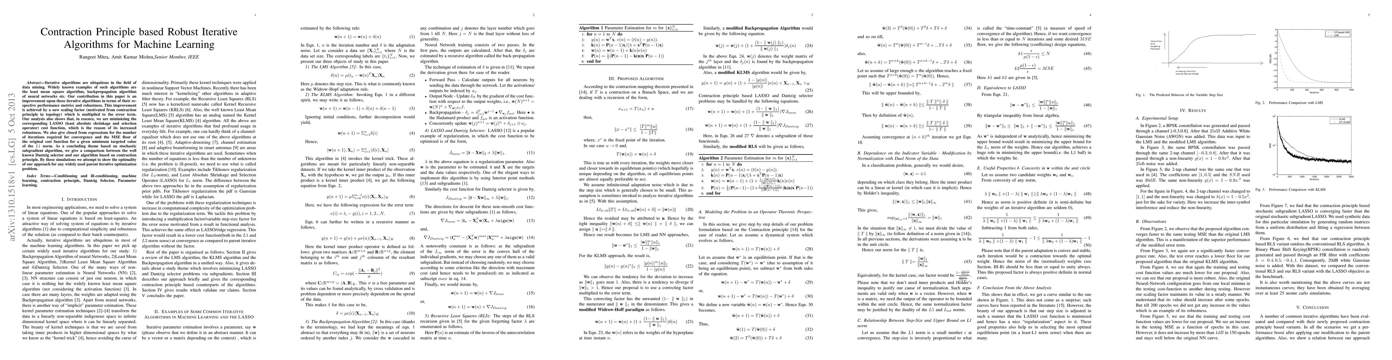 Iterative algorithms are ubiquitous in the field of data mining. Widely known examples of such algorithms are the least mean square algorithm, backpropagation algorithm of neural networks. Our contribution in this paper is an improvement upon this iterative algorithms in terms of their respective performance metrics and robustness. This improvement is achieved by a new scaling factor which is multiplied to the error term. Our analysis shows that in essence, we are minimizing the corresponding LASSO cost function, which is the reason of its increased robustness. We also give closed form expressions for the number of iterations for convergence and the MSE floor of the original cost function for a minimum targeted value of the L1 norm. As a concluding theme based on the stochastic subgradient algorithm, we give a comparison between the well known Dantzig selector and our algorithm based on contraction principle. By these simulations we attempt to show the optimality of our approach for any widely used parent iterative optimization problem.