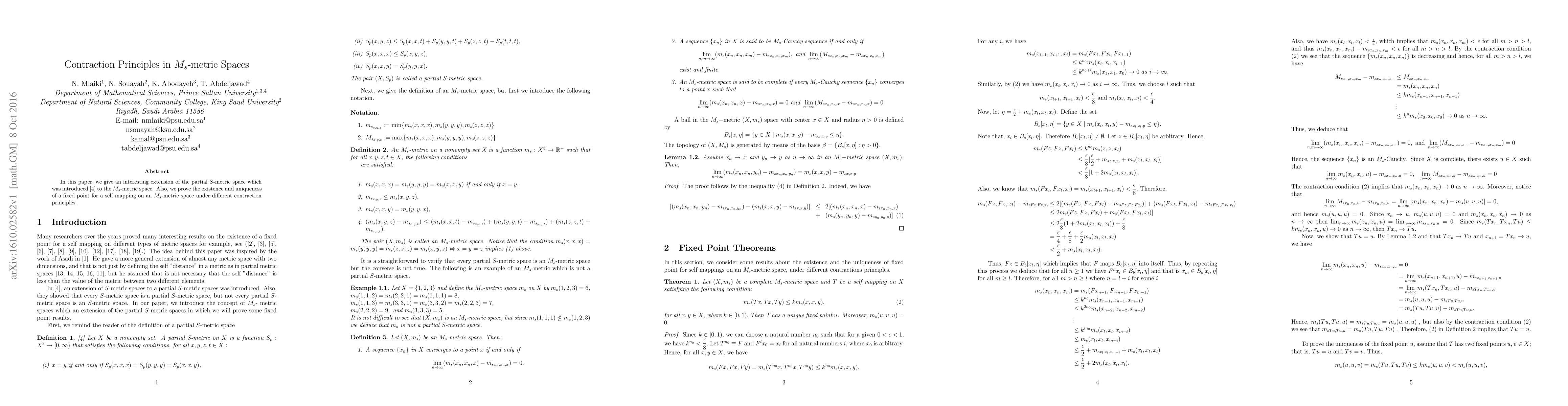 This paper extends partial S-metric space to M_s-metric space and proves existence and uniqueness of fixed points for self mappings under different contraction principles.