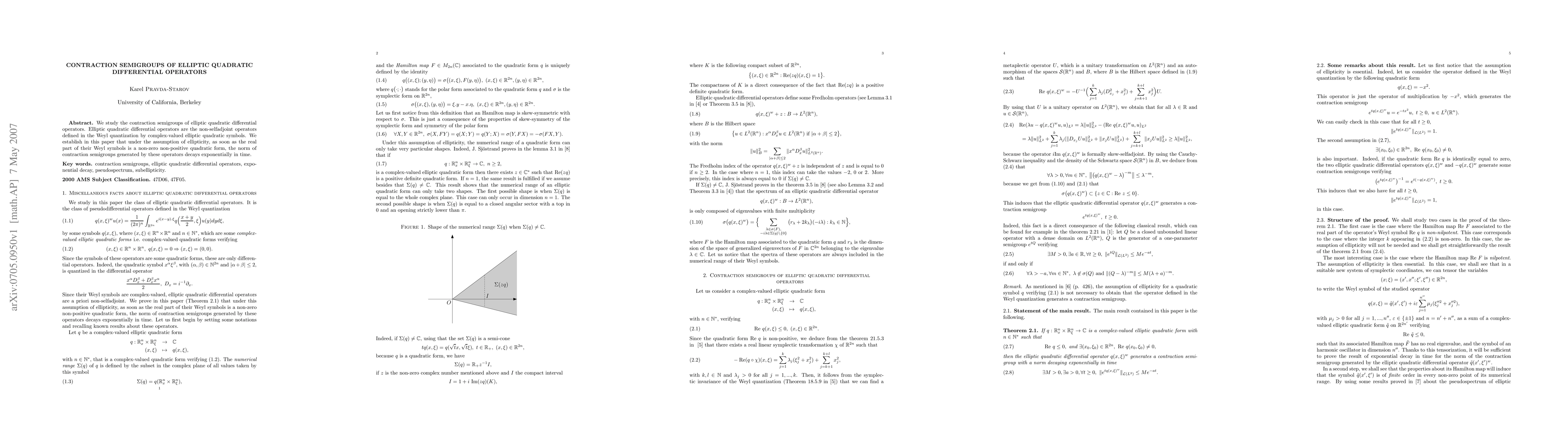 This paper investigates the contraction semigroups of elliptic quadratic differential operators, showing that under the condition of ellipticity and a non-positive quadratic form for the real part of their Weyl symbols, the norm of these semigroups decays exponentially over time.