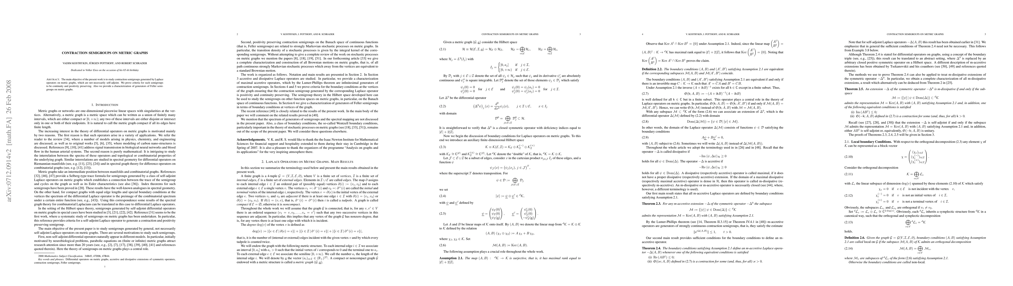 This paper investigates contraction semigroups generated by Laplace operators on metric graphs, proving criteria for continuity and positivity preservation. It also characterizes the generators of Feller semigroups on these graphs.