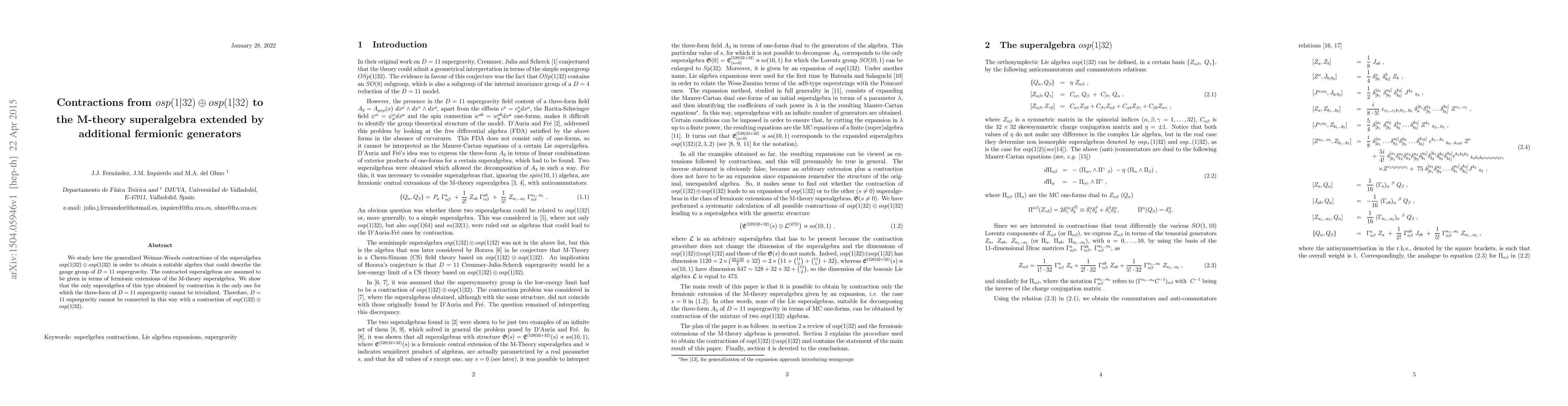 This paper investigates the generalized Weimar-Woods contractions of the $osp(1|32) \oplus osp(1|32)$ superalgebra to derive a suitable algebra for $D=11$ supergravity. The study concludes that no contraction results in a superalgebra that trivializes the three-form of $D=11$ supergravity, implying no such connection exists.