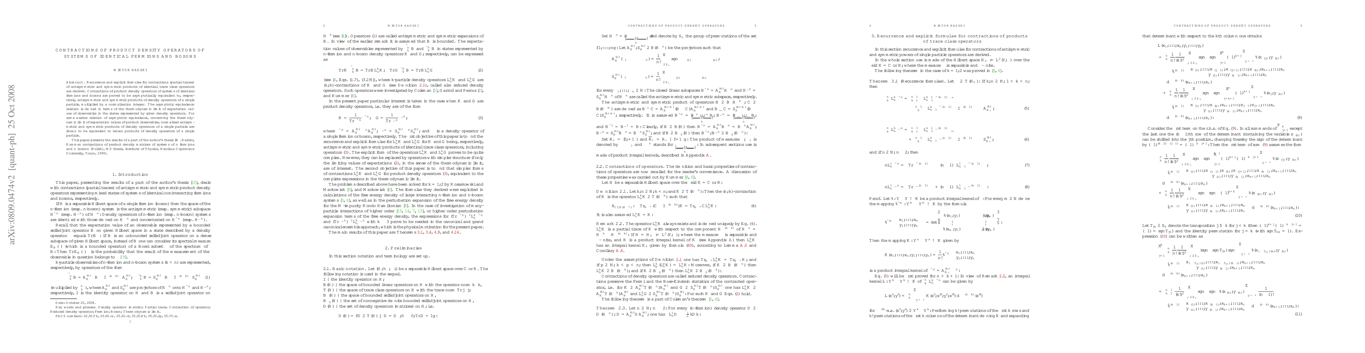 Researchers derived recurrence and explicit formulae for contractions of product density operators in systems of identical fermions and bosons, showing asymptotic equivalence to single-particle density operators with normalization integers.