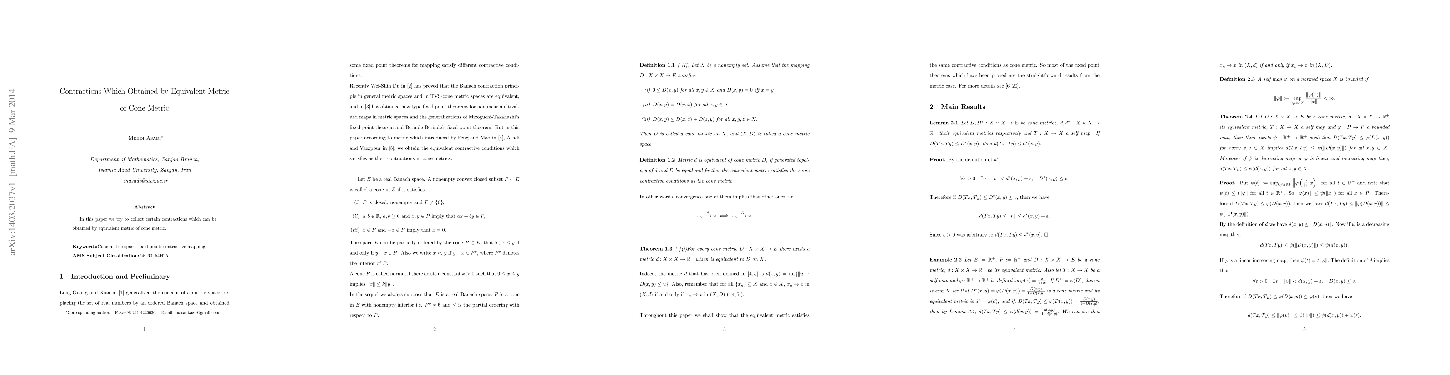 In this paper we try to collect certain contractions which can be obtained by equivalent metric of cone metric.