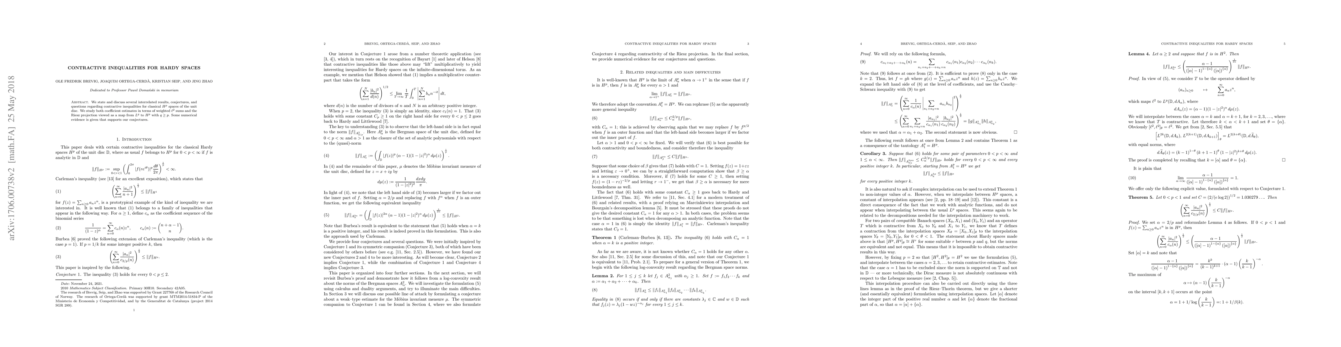 This paper presents contractive inequalities for classical Hardy spaces $H^p$ on the unit disc, explores coefficient estimates via weighted $\ell^2$ sums, and examines the Riesz projection mapping $L^q$ to $H^p$ for $q\ge p$. Numerical evidence supports the proposed conjectures.