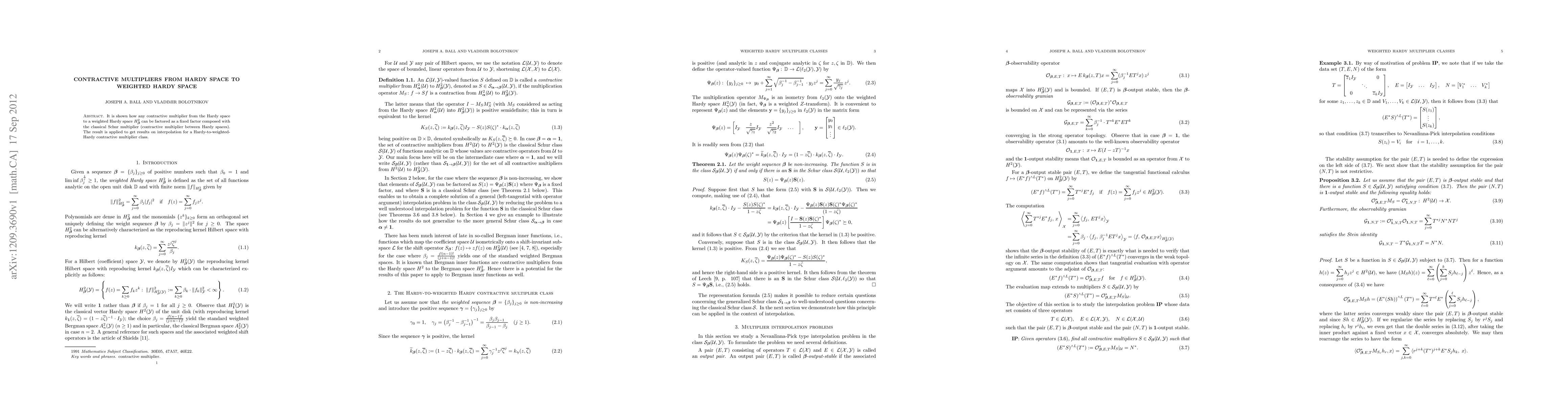 Summary: The paper demonstrates how contractive multipliers from the Hardy space to a weighted Hardy space can be decomposed into a fixed factor and a classical Schur multiplier. It applies this factorization to derive interpolation results for the contractive multiplier class.