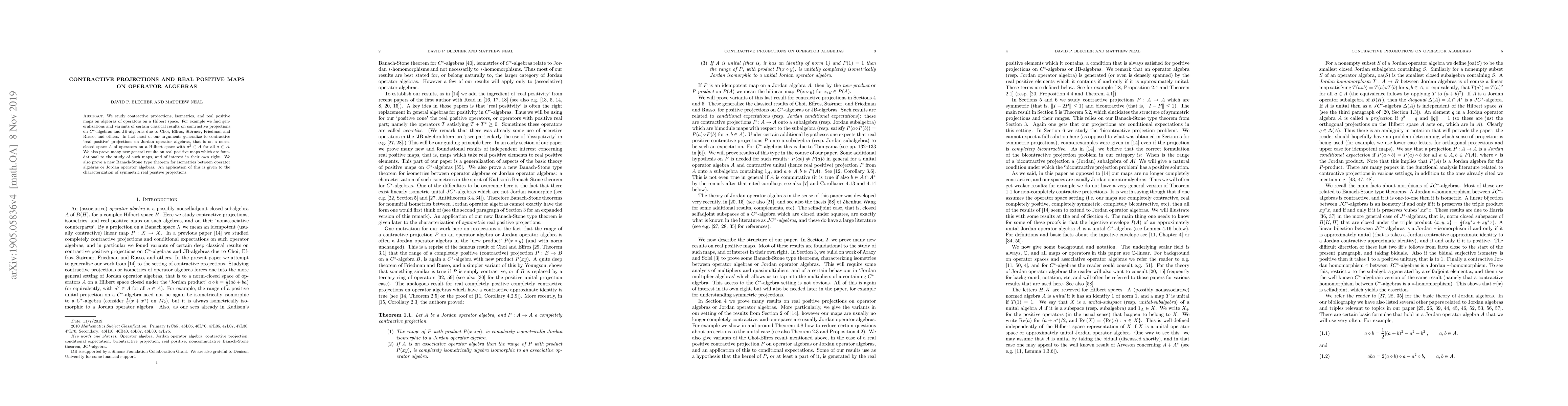 This paper explores contractive projections, isometries, and real positive maps on operator algebras, extending classical results and introducing new foundational theorems for real positive maps. It also proves a Banach-Stone theorem for isometries and characterizes symmetric real positive projections.