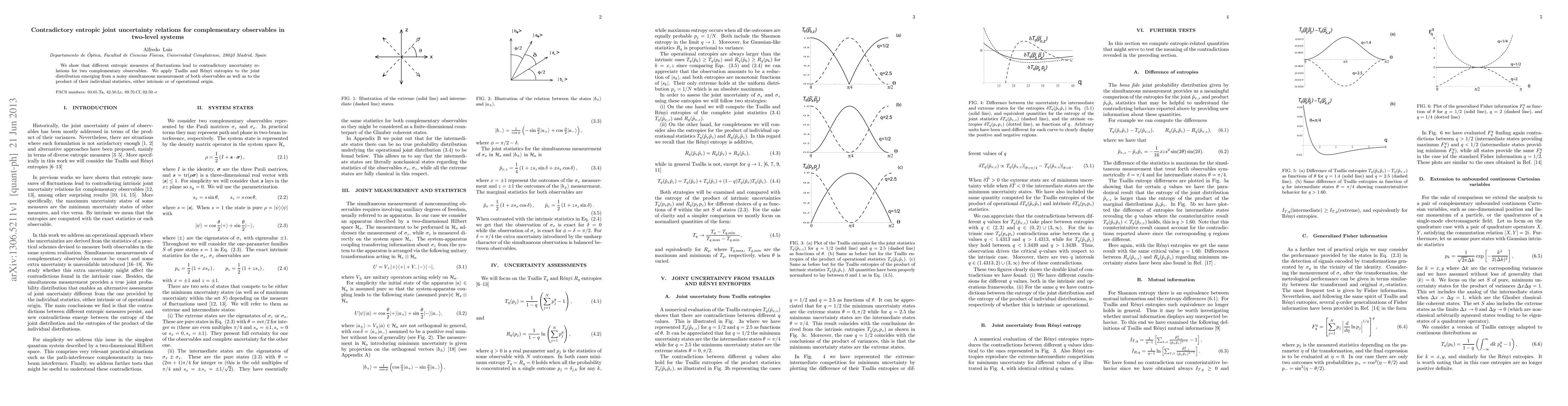 This paper demonstrates that different entropic measures result in conflicting uncertainty relations for complementary observables in two-level systems. It uses Tsallis and Rényi entropies to analyze both joint and individual distributions from noisy simultaneous measurements.