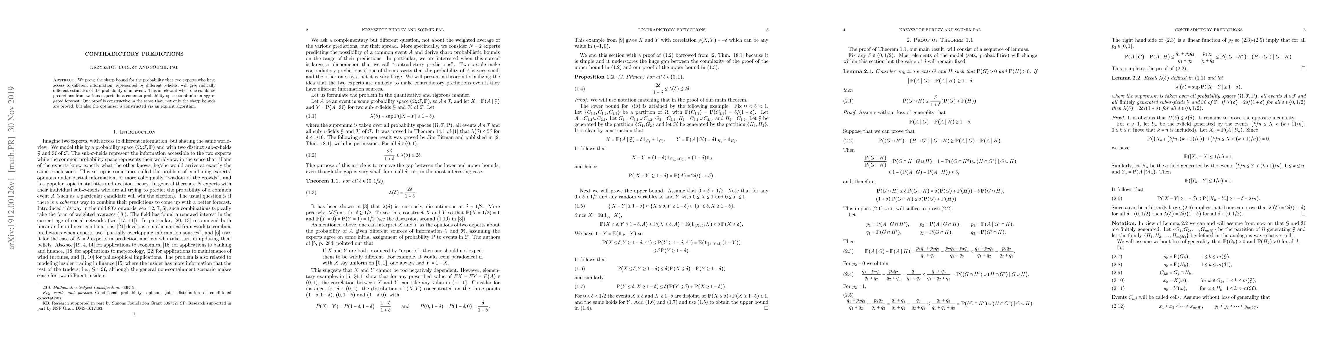 We prove the sharp bound for the probability that two experts who have access to different information, represented by different $\sigma$-fields, will give radically different estimates of the probability of an event. This is relevant when one combines predictions from various experts in a common probability space to obtain an aggregated forecast. Our proof is constructive in the sense that, not only the sharp bounds are proved, but also the optimizer is constructed via an explicit algorithm.