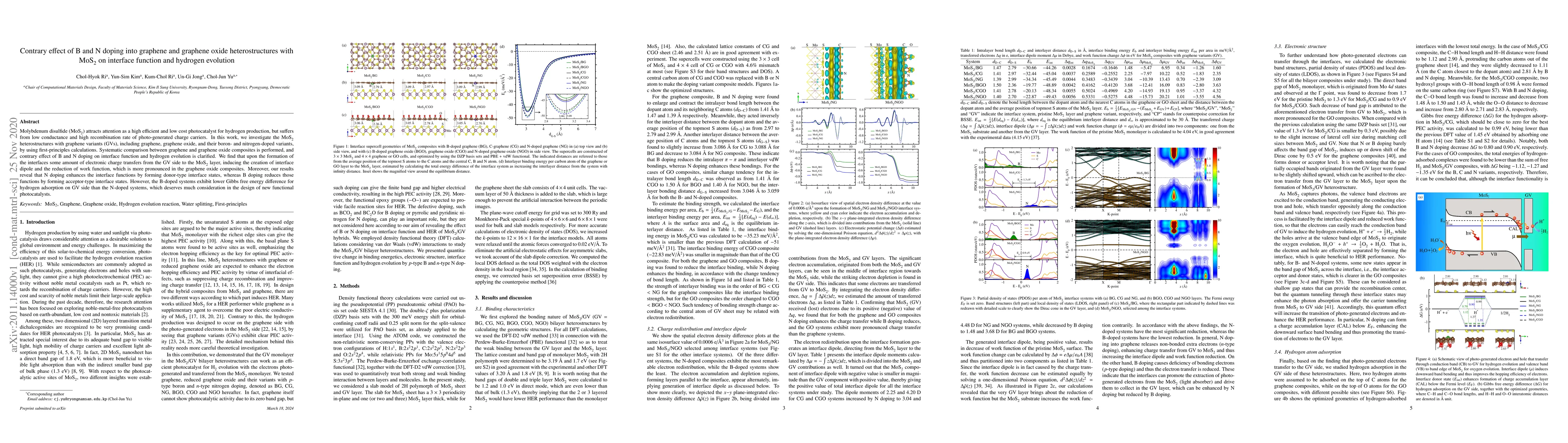 This research investigates the contrasting effects of boron (B) and nitrogen (N) doping in graphene and graphene oxide variants when interfaced with MoS$_2$ for hydrogen evolution. It finds that while N doping enhances interface functions through donor-type states, B doping diminishes these functions via acceptor-type states, though B-doped systems show lower Gibbs free energy for hydrogen adsorption.