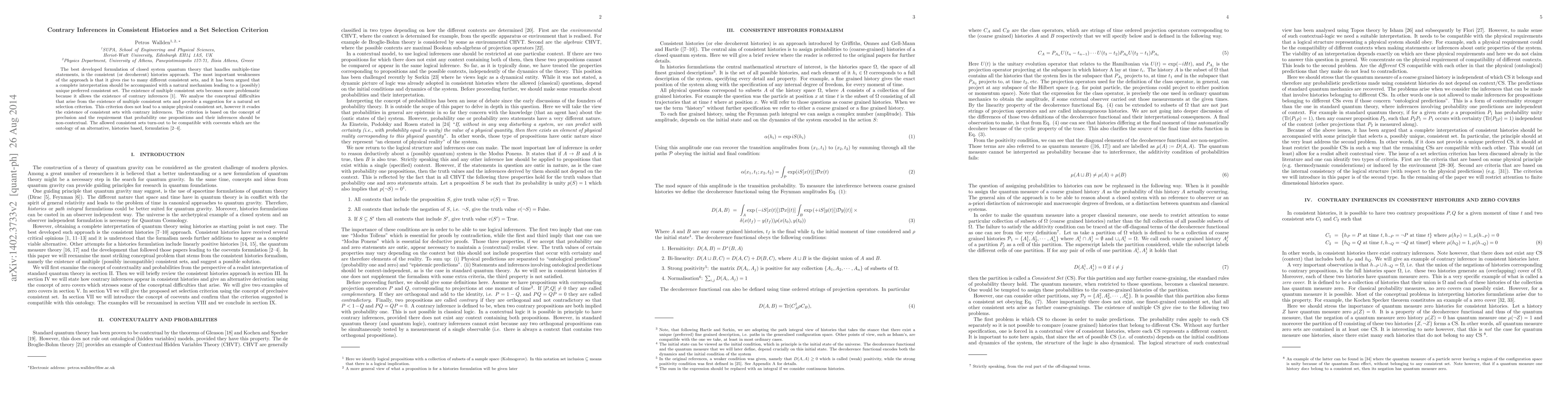 Researchers propose a set selection criterion to address the problem of multiple consistent sets in closed system quantum theory, avoiding contrary inferences that arise from inconsistent histories approaches.