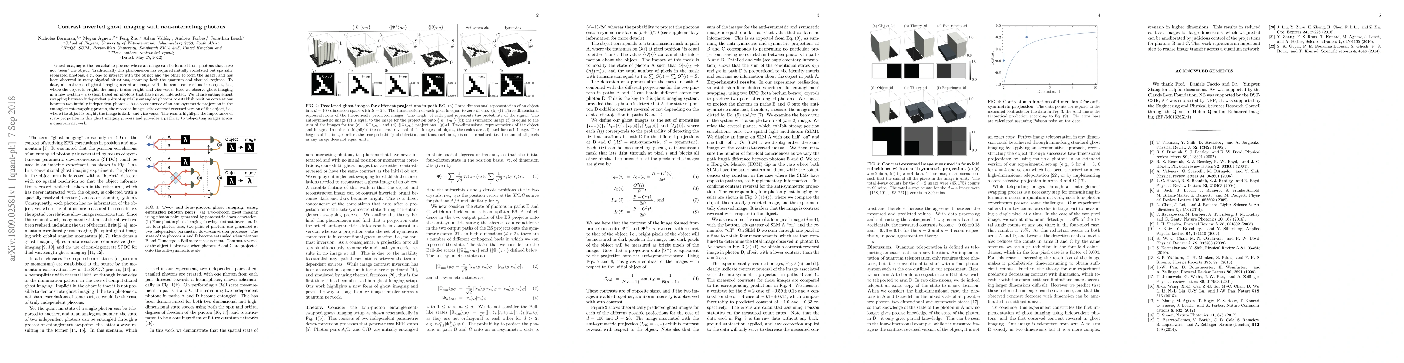 This paper demonstrates a novel form of ghost imaging using non-interacting photons, where entanglement swapping creates correlations between initially independent photons. The resulting image exhibits an inverted contrast compared to the object, highlighting the role of state projection in this process.