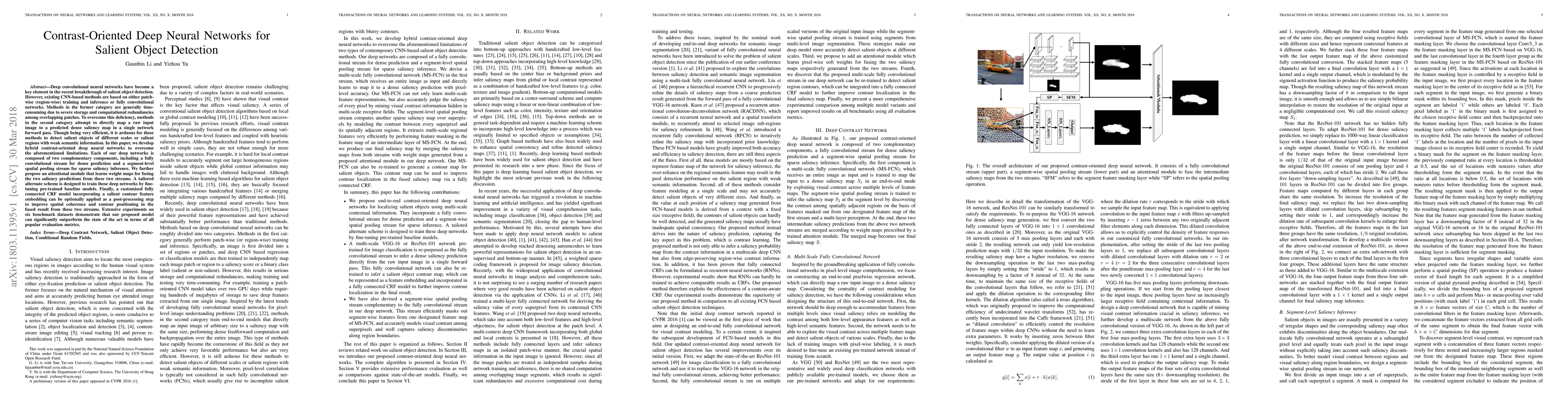 A new deep neural network architecture, Contrast-Oriented Deep Neural Networks, improves salient object detection by combining dense prediction and sparse inference in a hybrid approach.