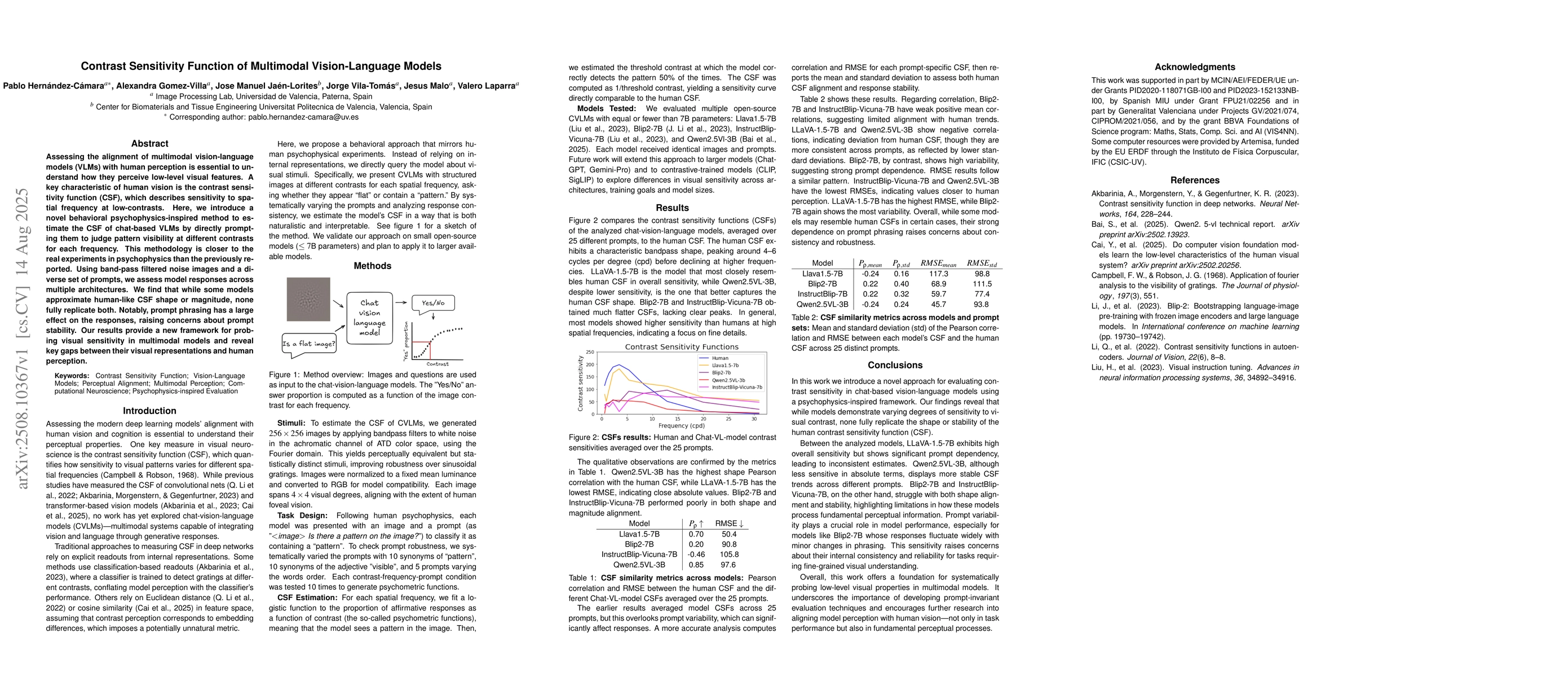 Assessing the alignment of multimodal vision-language models~(VLMs) with human perception is essential to understand how they perceive low-level visual features. A key characteristic of human vision is the contrast sensitivity function (CSF), which describes sensitivity to spatial frequency at low-contrasts. Here, we introduce a novel behavioral psychophysics-inspired method to estimate the CSF of chat-based VLMs by directly prompting them to judge pattern visibility at different contrasts for each frequency. This methodology is closer to the real experiments in psychophysics than the previously reported. Using band-pass filtered noise images and a diverse set of prompts, we assess model responses across multiple architectures. We find that while some models approximate human-like CSF shape or magnitude, none fully replicate both. Notably, prompt phrasing has a large effect on the responses, raising concerns about prompt stability. Our results provide a new framework for probing visual sensitivity in multimodal models and reveal key gaps between their visual representations and human perception.