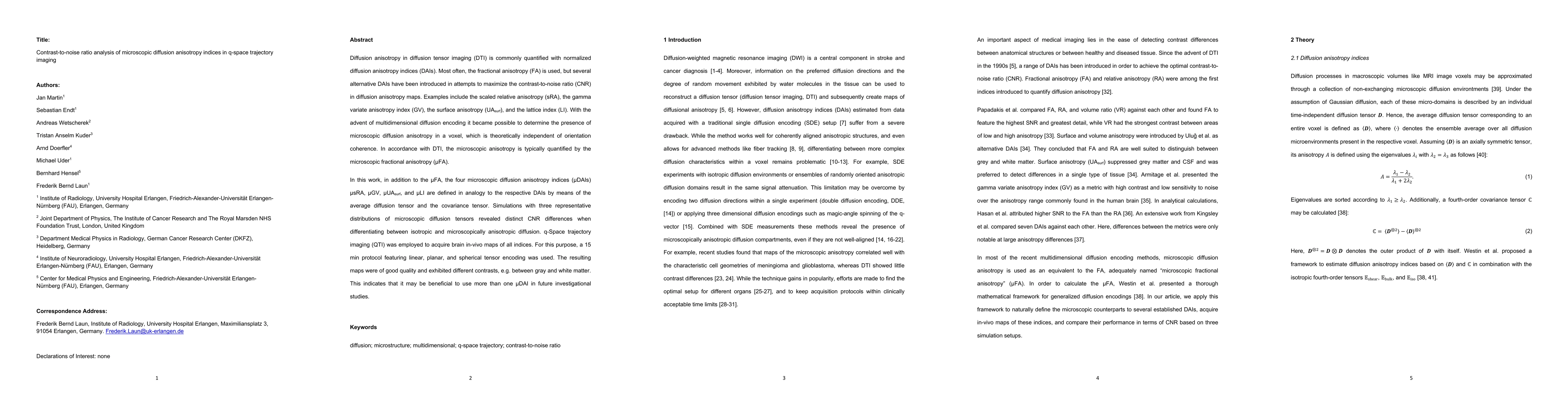 This paper investigates the contrast-to-noise ratio (CNR) of various microscopic diffusion anisotropy indices (uDAIs) in q-space trajectory imaging (QTI) compared to traditional fractional anisotropy (FA). The study shows that different uDAIs, including usRA, uGV, uUAsurf, and uLI, provide distinct CNR differences in differentiating microscopic anisotropy, suggesting the potential benefit of using multiple uDAIs in future studies.
