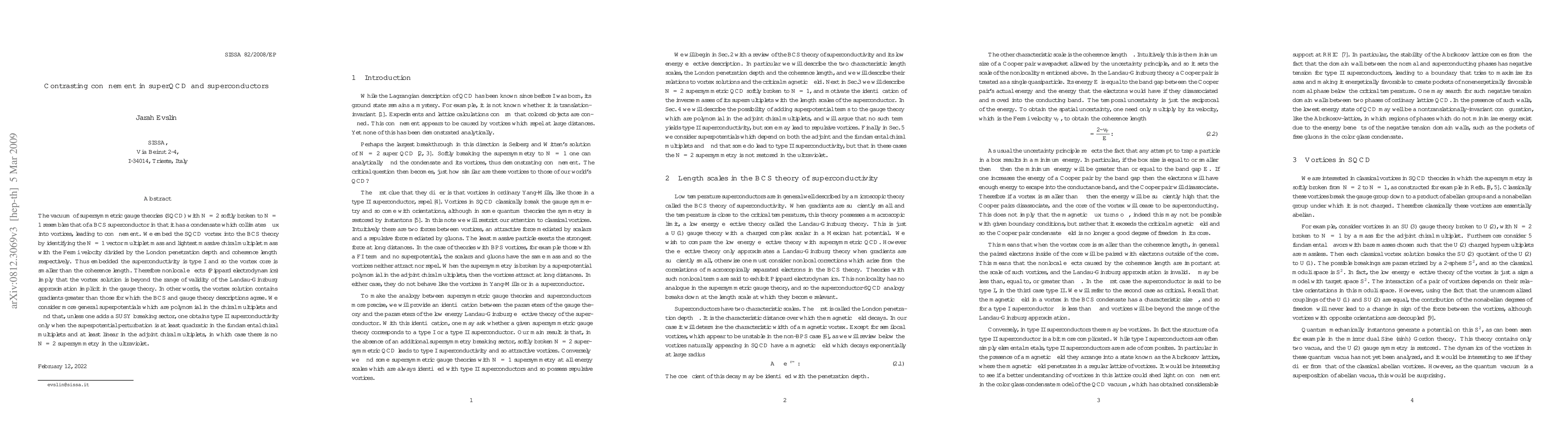 The vacuum of supersymmetric gauge theories (SQCD) with N=2 softly broken to N=1 resembles that of a BCS superconductor in that it has a condensate which collimates flux into vortices, leading to confinement. We embed the SQCD vortex into the BCS theory by identifying the N=1 vector multiplet mass and lightest massive chiral multiplet mass with the Fermi velocity divided by the London penetration depth and coherence length respectively. Thus embedded the superconductivity is type I and so the vortex core is smaller than the coherence length. Therefore nonlocal effects (Pippard electrodynamics) imply that the vortex solution is beyond the range of validity of the Landau-Ginzburg approximation implicit in the gauge theory. In other words, the vortex solution contains gradients greater than those for which the BCS and gauge theory descriptions agree. We consider more general superpotentials which are polynomial in the chiral multiplets and find that, unless one adds a SUSY breaking sector, one obtains type II superconductivity only when the superpotential perturbation is at least quadratic in the fundamental chiral multiplets and at least linear in the adjoint chiral multiplets, in which case there is no N=2 supersymmetry in the ultraviolet.