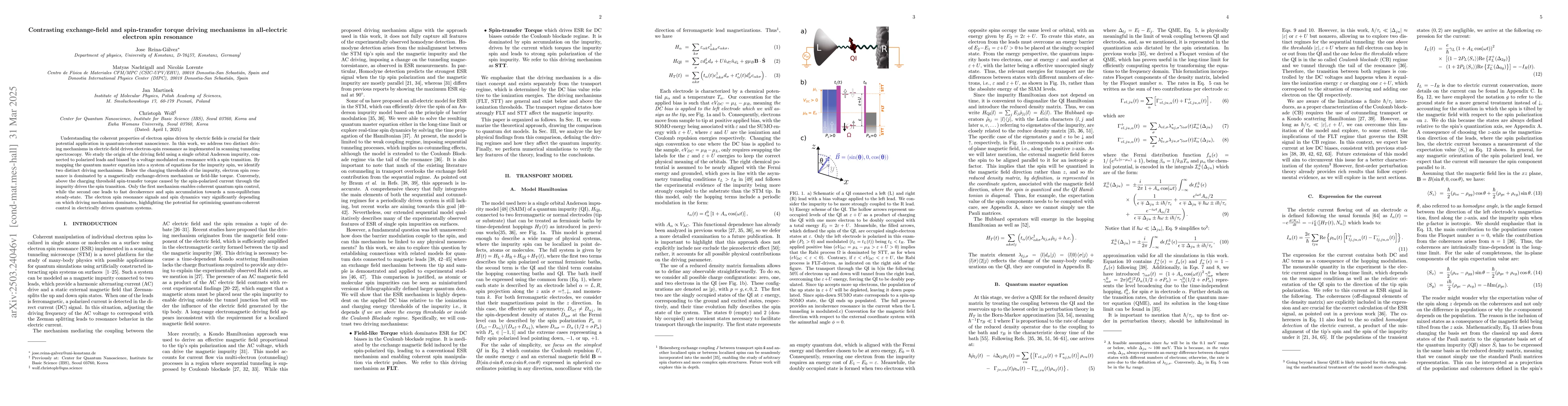 Development of a method to identify and contrast exchange-field and spin-transfer torque driving mechanisms in electric-field driven electron-spin resonance using quantum master equation formalism.