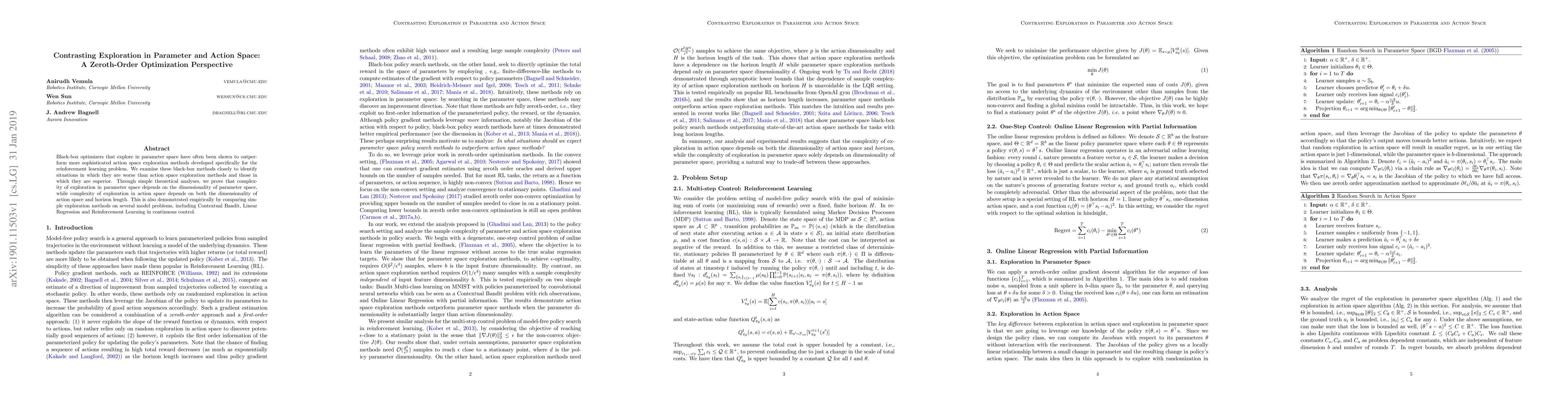 Black-box optimizers that explore in parameter space have often been shown to outperform more sophisticated action space exploration methods developed specifically for the reinforcement learning problem. We examine these black-box methods closely to identify situations in which they are worse than action space exploration methods and those in which they are superior. Through simple theoretical analyses, we prove that complexity of exploration in parameter space depends on the dimensionality of parameter space, while complexity of exploration in action space depends on both the dimensionality of action space and horizon length. This is also demonstrated empirically by comparing simple exploration methods on several model problems, including Contextual Bandit, Linear Regression and Reinforcement Learning in continuous control.