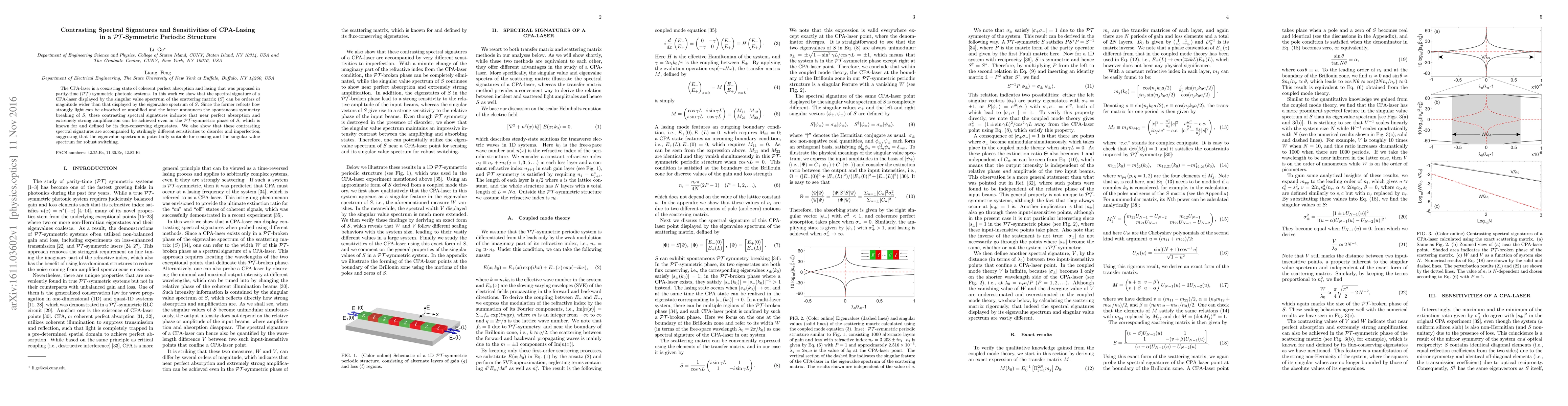 This paper investigates the contrasting spectral signatures of CPA-lasing in a $\cal PT$-symmetric periodic structure, revealing that the singular value spectrum of the scattering matrix can be significantly wider than the eigenvalue spectrum. These findings suggest that near perfect absorption and strong amplification can occur even in the $\cal PT$-symmetric phase, while different sensitivities to disorder highlight potential applications for sensing and robust switching.