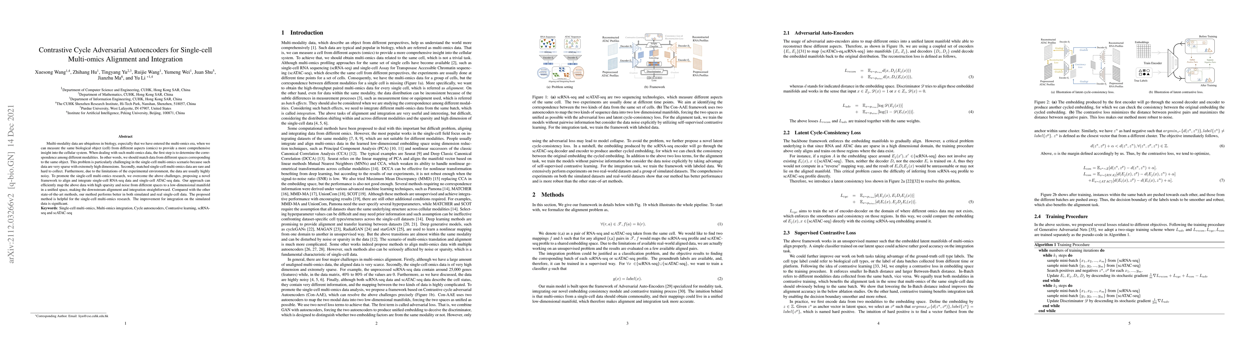 This paper introduces Contrastive Cycle Adversarial Autoencoders (CCAEs) for aligning and integrating single-cell multi-omics data, specifically RNA-seq and ATAC-seq data. The proposed method effectively maps high-dimensional, sparse, and noisy single-cell data to a unified low-dimensional space, outperforming existing state-of-the-art methods in both simulated and real datasets.