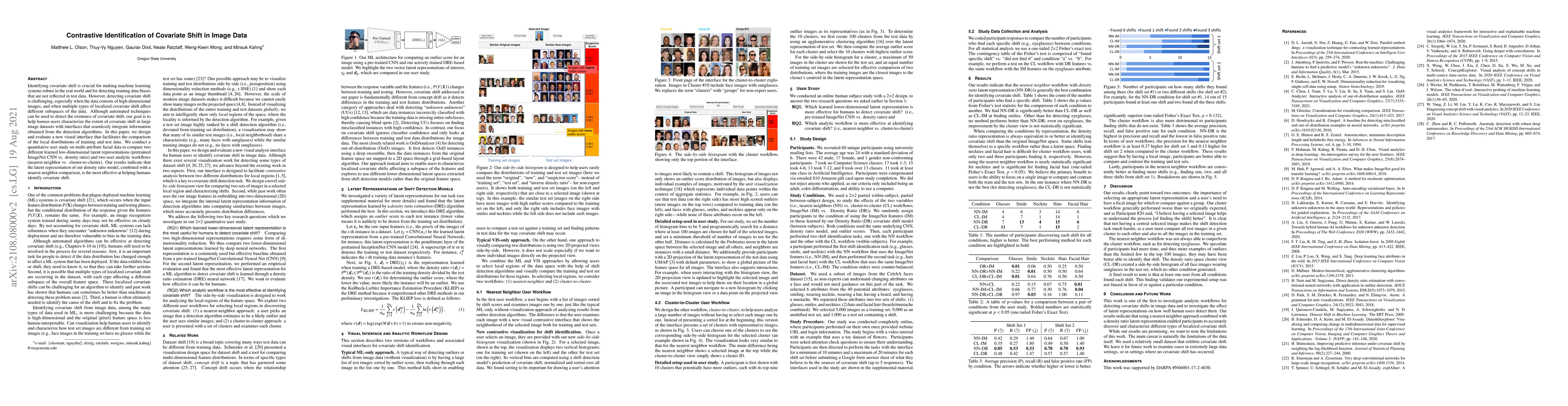 This paper introduces a visual interface to aid human users in identifying covariate shift in large image datasets by comparing local distributions of training and test data. The study finds that the density ratio model's latent representation, paired with a nearest-neighbor comparison, is most effective for detecting covariate shift.
