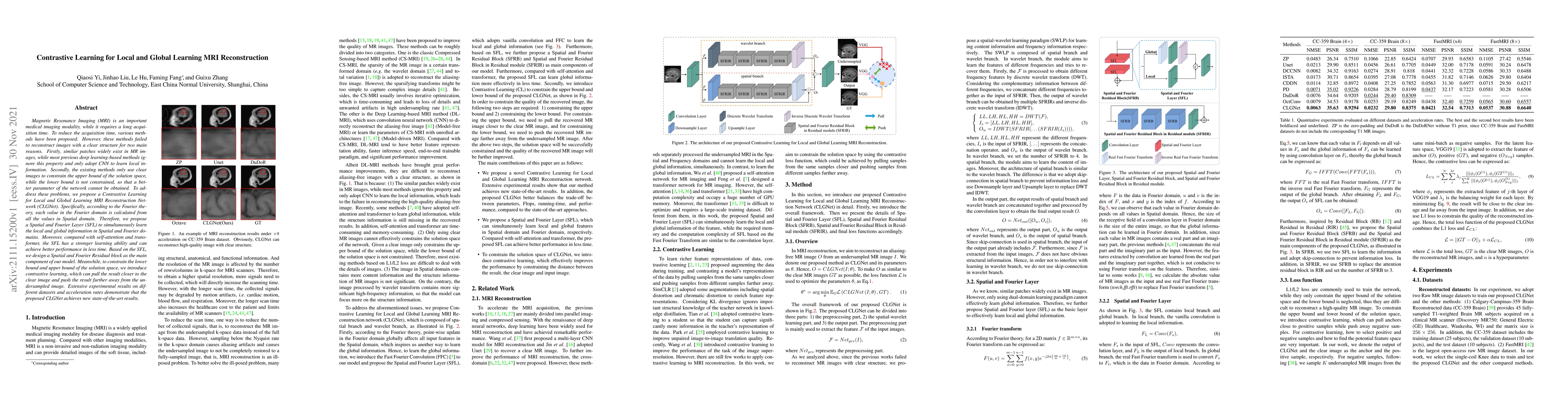 A new MRI reconstruction method called CLGNet uses a combination of local and global learning to reduce acquisition time while improving image clarity. It achieves state-of-the-art results in various datasets.