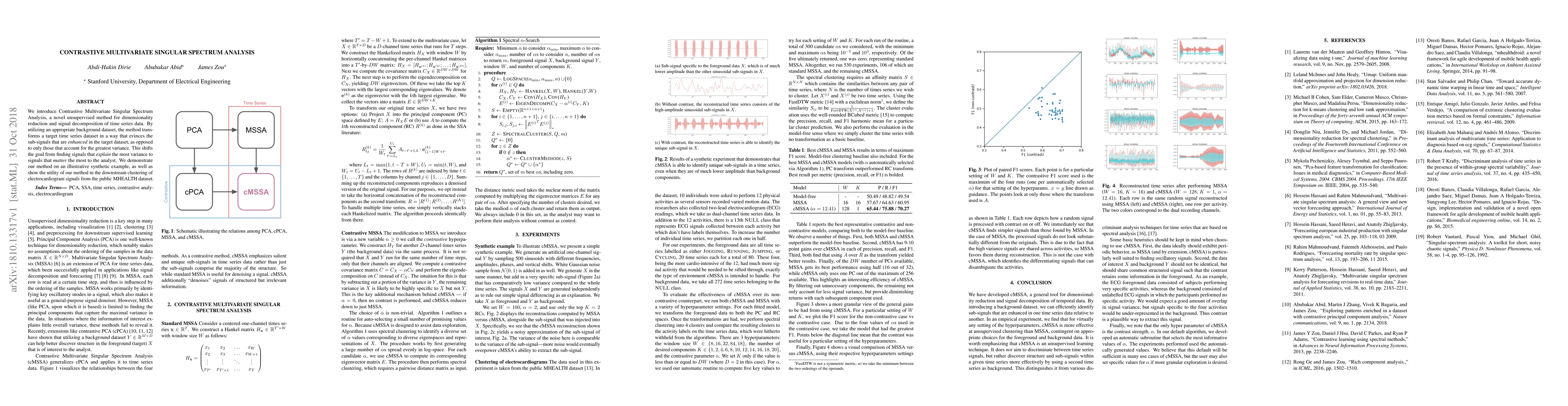 The research introduces Contrastive Multivariate Singular Spectrum Analysis (cMSSA), a novel unsupervised method for dimensionality reduction and signal decomposition of time series data. cMSSA utilizes a background dataset to transform a target dataset, enhancing sub-signals specific to the target dataset rather than just those with the greatest variance.