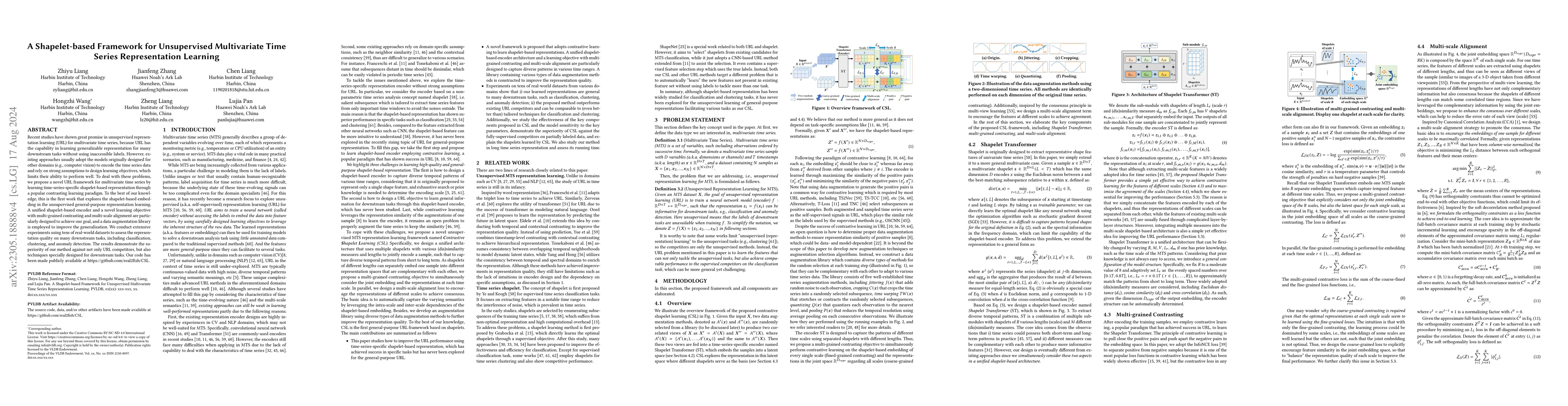 This paper proposes a novel unsupervised representation learning framework for multivariate time series that employs a shapelet-based encoder and contrastive learning to achieve time-series-specific representation. The method shows superior performance in downstream tasks like classification and clustering, outperforming both general unsupervised methods and specialized techniques.