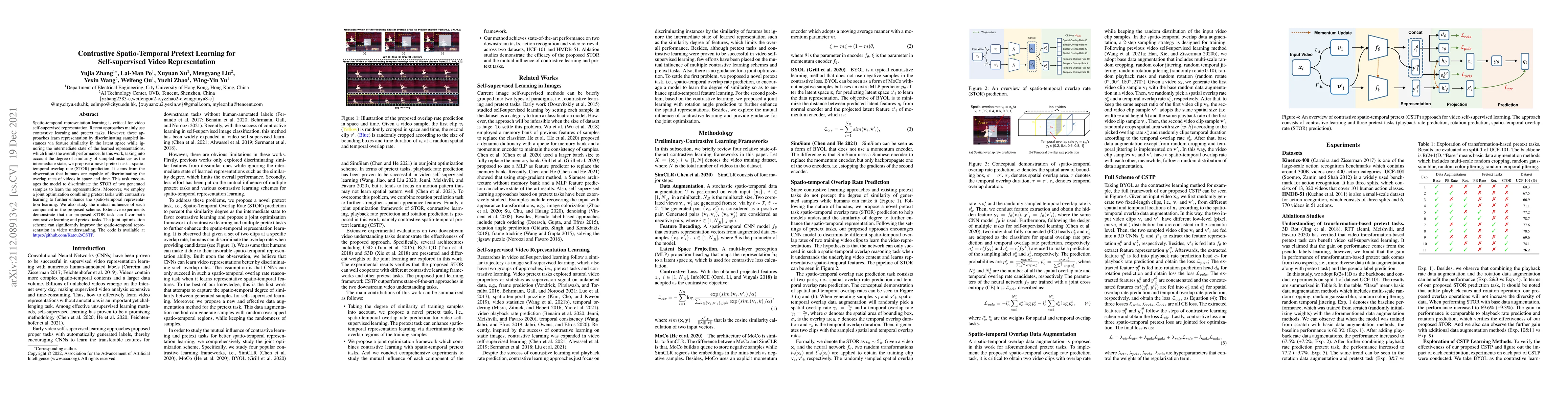 This paper proposes a novel spatio-temporal overlap rate (STOR) prediction pretext task to enhance self-supervised video representation learning. It combines this task with contrastive learning to improve spatio-temporal representation, demonstrating significant performance gains in video understanding tasks.