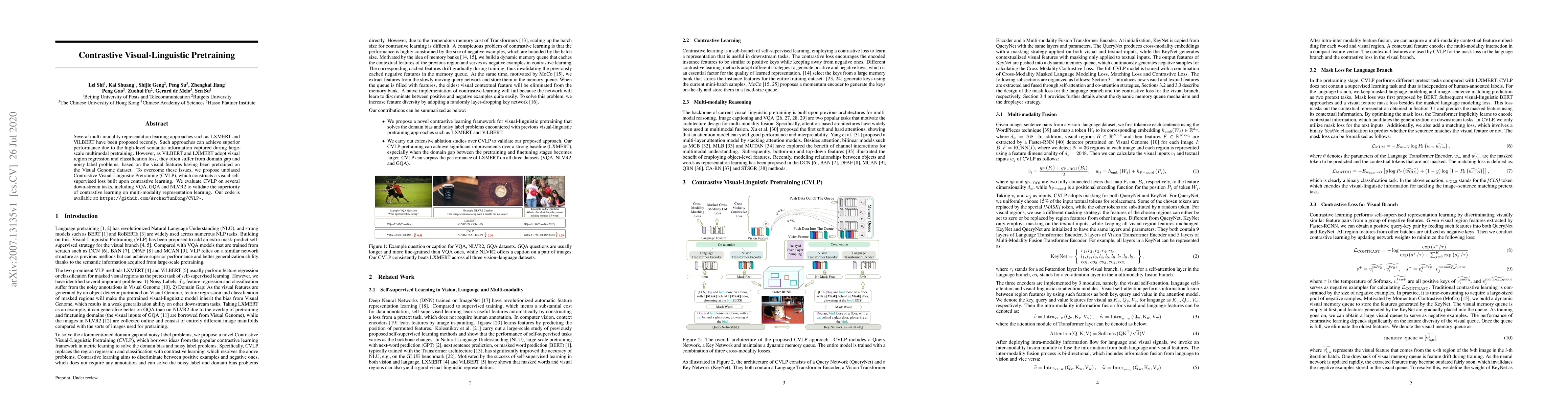 The paper proposes Contrastive Visual-Linguistic Pretraining (CVLP) to address domain gap and noisy label issues in existing multi-modality representation learning approaches like LXMERT and ViLBERT. CVLP utilizes contrastive learning for visual self-supervised pretraining, which is evaluated on tasks like VQA, GQA, and NLVR2 to demonstrate improved performance.