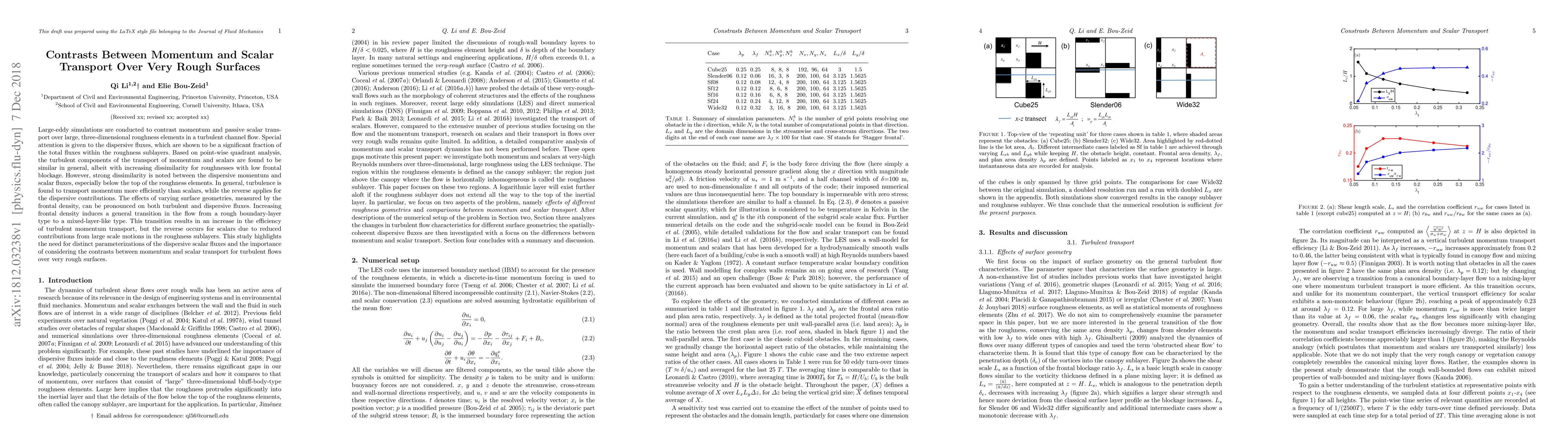 This study contrasts momentum and passive scalar transport over large, three-dimensional roughness elements in turbulent channel flow, revealing significant dispersive fluxes and dissimilarities in turbulent and dispersive momentum versus scalar fluxes. The research highlights the need for distinct parameterizations for dispersive scalar fluxes and underscores the impact of surface geometry on transport efficiencies.