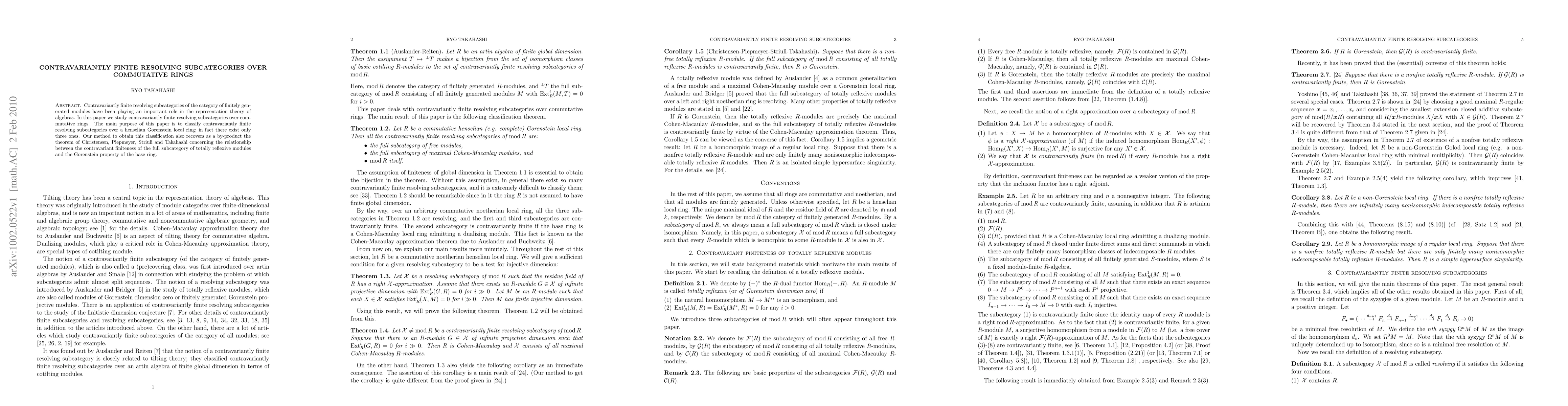 This paper classifies contravariantly finite resolving subcategories over henselian Gorenstein local rings, revealing that only three such subcategories exist. The methodology also reaffirms a theorem on the connection between the contravariant finiteness of totally reflexive modules and the Gorenstein property of the base ring.