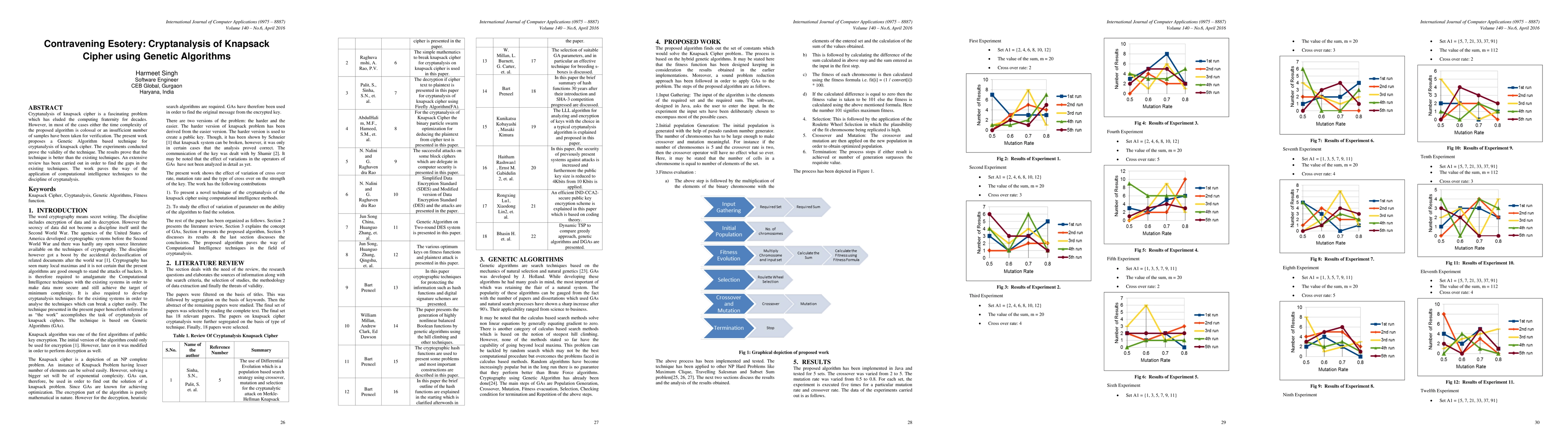 The paper proposes a Genetic Algorithm based technique for cryptanalysis of knapsack cipher, aiming to address the limitations of existing methods which often have high time complexity or insufficient sample sizes.