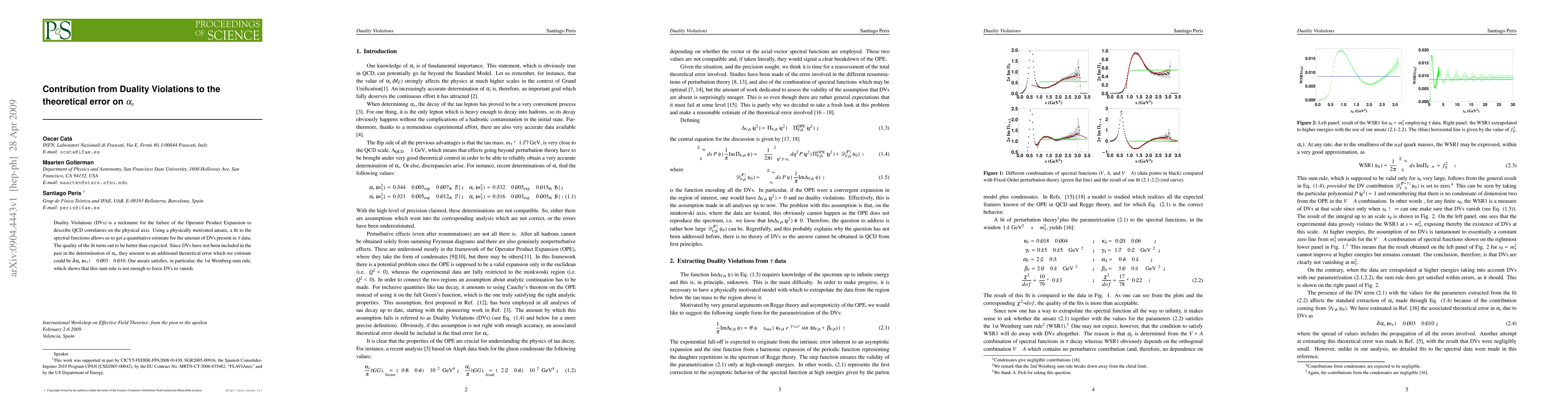 Duality Violations (DVs) is a nickname for the failure of the Operator Product Expansion to describe QCD correlators on the physical axis. Using a physically motivated ansatz, a fit to the spectral functions allows us to get a quantitative estimate for the amount of DVs present in tau data. The quality of the fit turns out to be better than expected. Since DVs have not been included in the past in the determination of alpha_s, they amount to an additional theoretical error which we estimate could be \delta alpha_s(m_{tau}) \sim 0.003-0.010 . Our ansatz satisfies, in particular, the 1st Weinberg sum rule, which shows that this sum rule is not enough to force DVs to vanish.