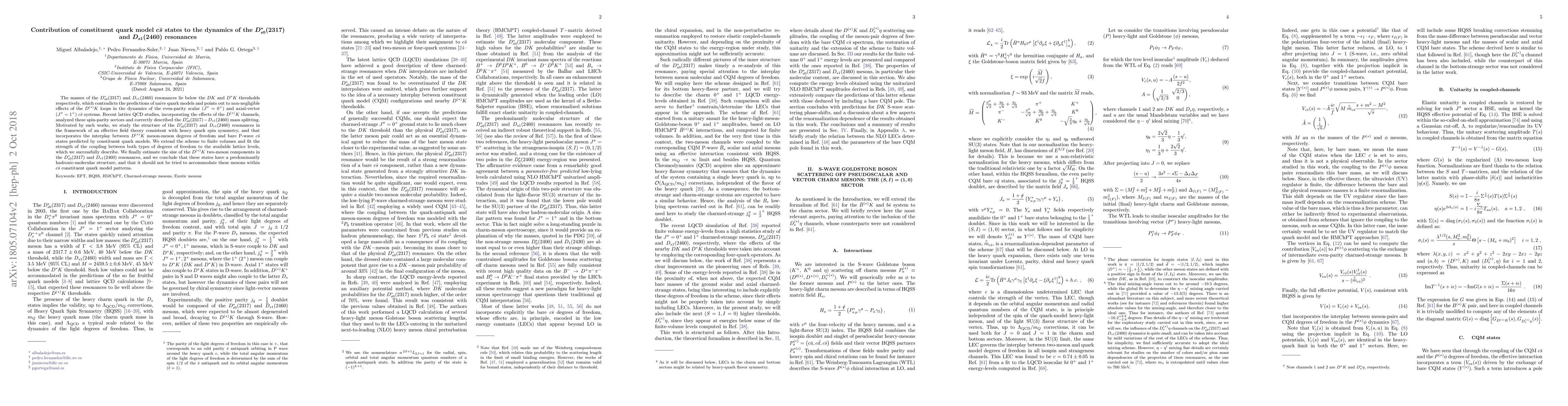 This paper investigates the dynamics of $D^\ast_{s0}(2317)$ and $D_{s1}(2460)$ resonances, finding they predominantly exhibit a hadronic-molecular structure due to significant $D^{(\ast)}K$ loop effects, rather than fitting traditional $c\bar{s}$ quark model predictions. The study uses an effective field theory to describe these resonances, concluding they cannot be accommodated within conventional quark model frameworks.