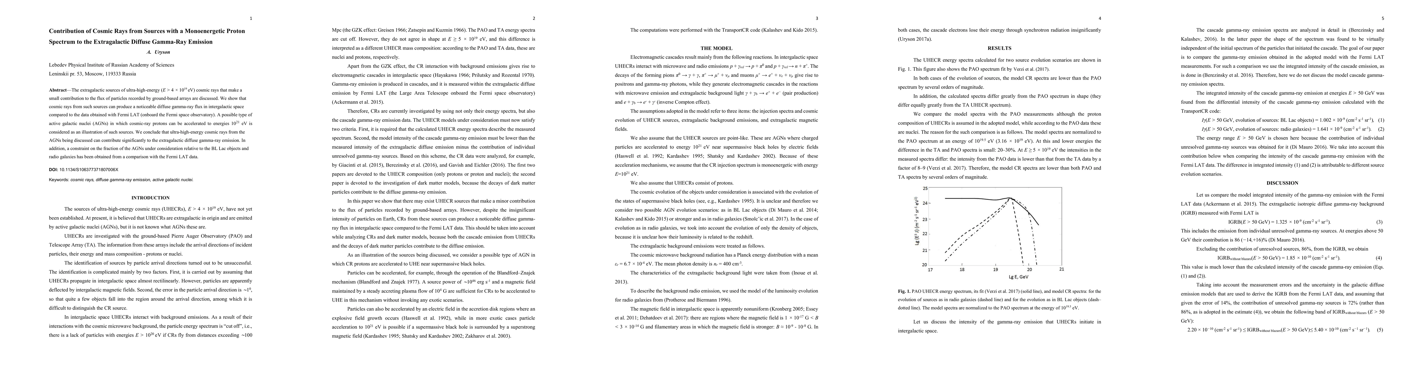This paper investigates the contribution of ultra-high-energy cosmic rays from monoenergetic proton sources, specifically active galactic nuclei, to the extragalactic diffuse gamma-ray emission. It concludes that these cosmic rays can significantly contribute to the observed gamma-ray flux, with constraints derived from Fermi LAT data.