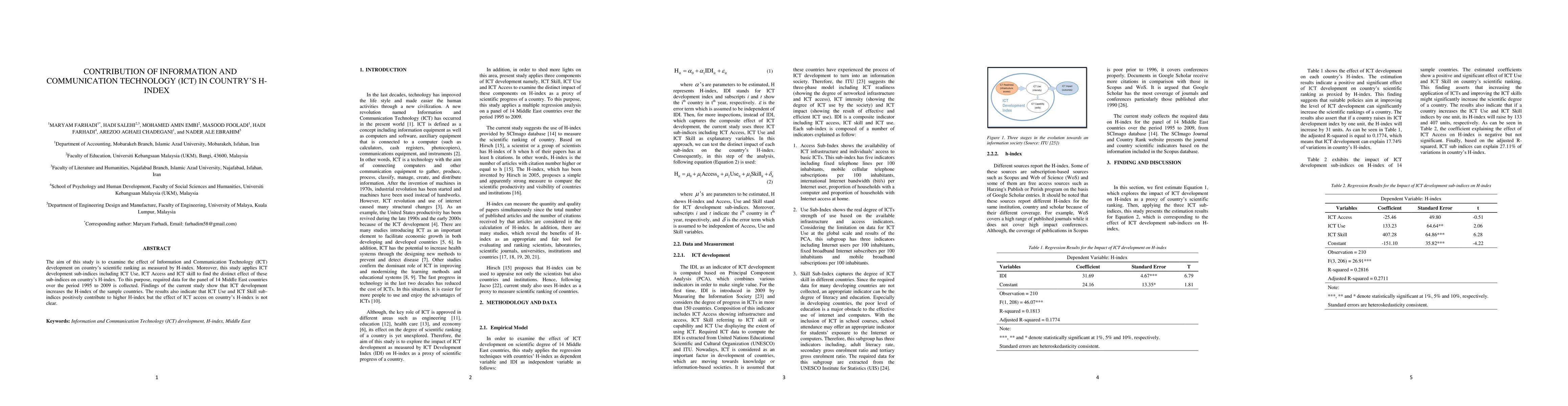 A study found that ICT development increases a country's H-index ranking, with ICT use and skill contributing positively to higher rankings, while ICT access has unclear effects.