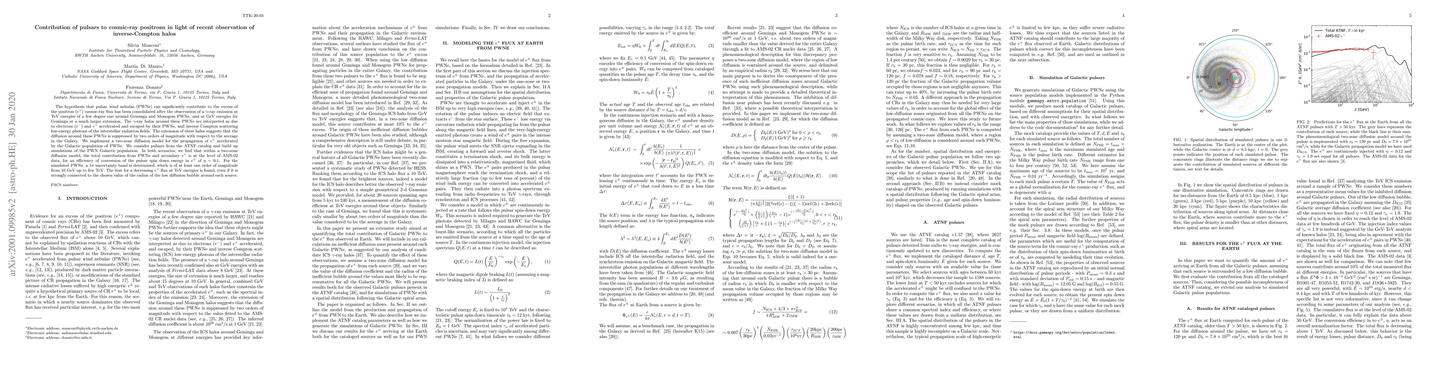 The hypothesis that pulsar wind nebulae (PWNe) can significantly contribute to the excess of the positron ($e^+$) cosmic-ray flux has been consolidated after the observation of a $\gamma$-ray emission at TeV energies of a few degree size around Geminga and Monogem PWNe, and at GeV energies for Geminga at a much larger extension. The $\gamma$-ray halos around these PWNe are interpreted as due to electrons ($e^-$) and $e^+$ accelerated and escaped by their PWNe, and inverse Compton scattering low-energy photons of the interstellar radiation fields. The extension of these halos suggests that the diffusion around these PWNe is suppressed by two orders of magnitude with respect to the average in the Galaxy. We implement a two-zone diffusion model for the propagation of $e^+$ accelerated by the Galactic population of PWNe. We consider pulsars from the ATNF catalog and build up simulations of the PWN Galactic population. In both scenarios, we find that within a two-zone diffusion model, the total contribution from PWNe and secondary $e^+$ is at the level of AMS-02 data, for an efficiency of conversion of the pulsar spin down energy in $e^\pm$ of $\eta\sim0.1$. For the simulated PWNe, a $1\sigma$ uncertainty band is determined, which is of at least one order of magnitude from 10 GeV up to few TeV. The hint for a decreasing $e^+$ flux at TeV energies is found, even if it is strongly connected to the chosen value of the radius of the low diffusion bubble around each source.