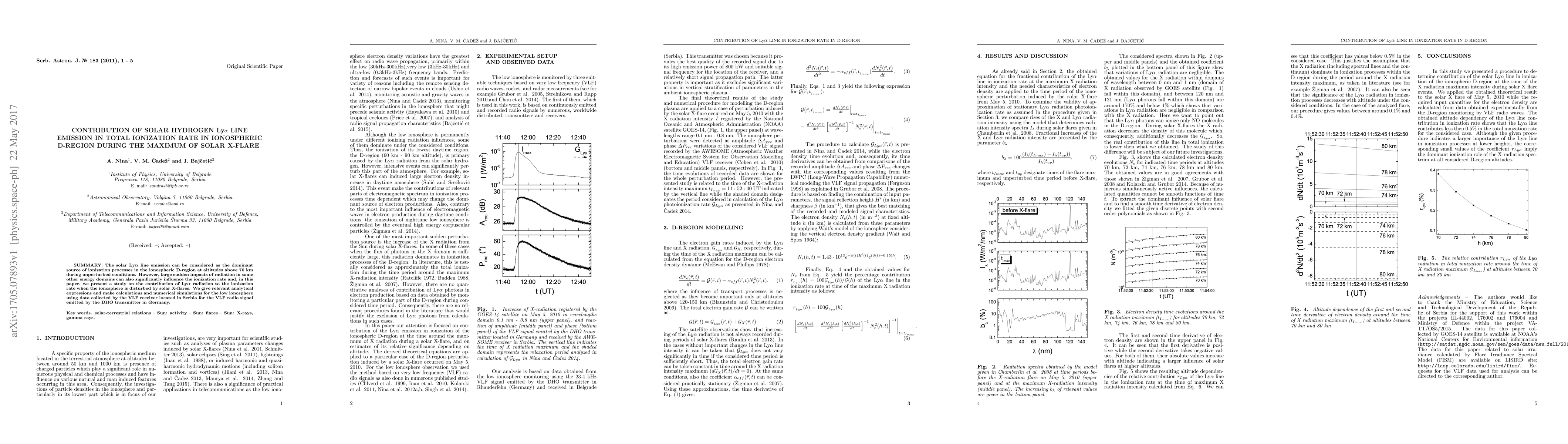 This paper investigates the impact of solar Ly{\alpha} line emission on the ionization rate in the ionospheric D-region during solar X-flares, providing analytical expressions and numerical simulations based on VLF data from Serbia and Germany. It highlights the significant influence of the Ly{\alpha} line even under disturbed ionospheric conditions.