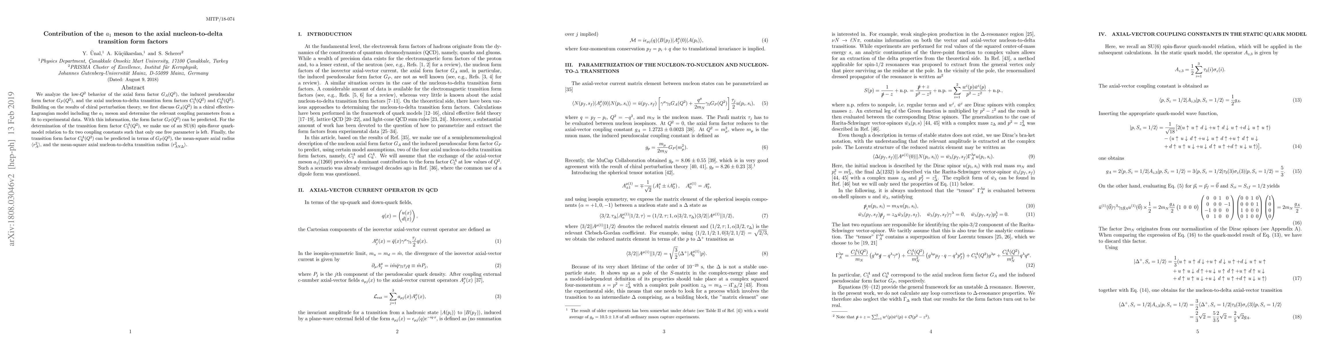 This paper investigates the influence of the $a_1$ meson on axial nucleon-to-$\Delta$ transition form factors using chiral perturbation theory and a chiral effective-Lagrangian model, with coupling parameters derived from experimental data to predict the form factors $G_A(Q^2)$, $G_P(Q^2)$, $C^A_5(Q^2)$, and $C^A_6(Q^2)$.