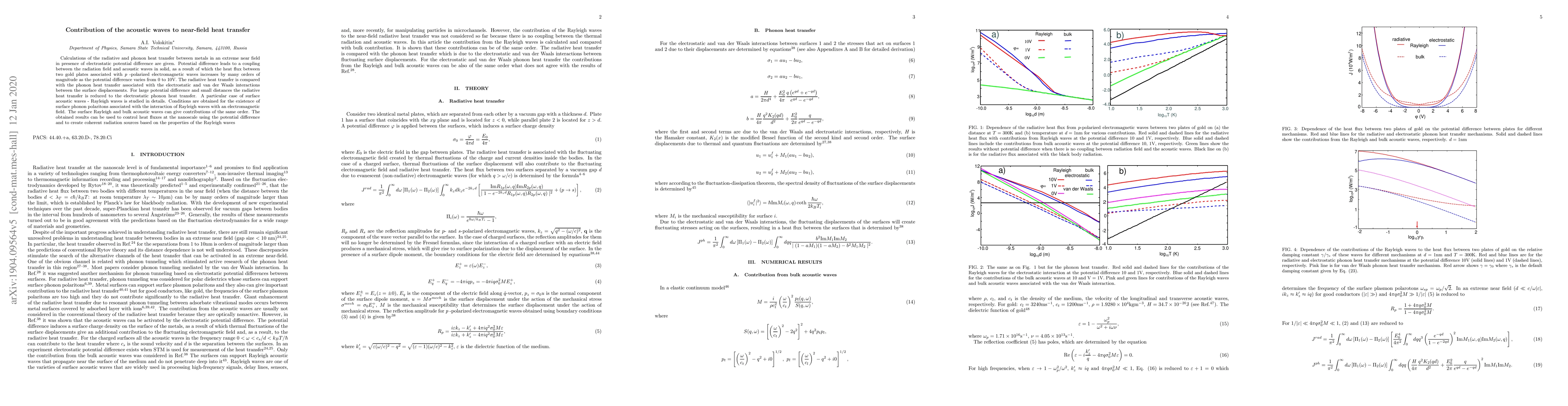 The paper presents detailed calculations and comparisons of radiative and phonon heat transfer mechanisms in the near-field of charged metallic surfaces, highlighting the significant role of acoustic waves.
