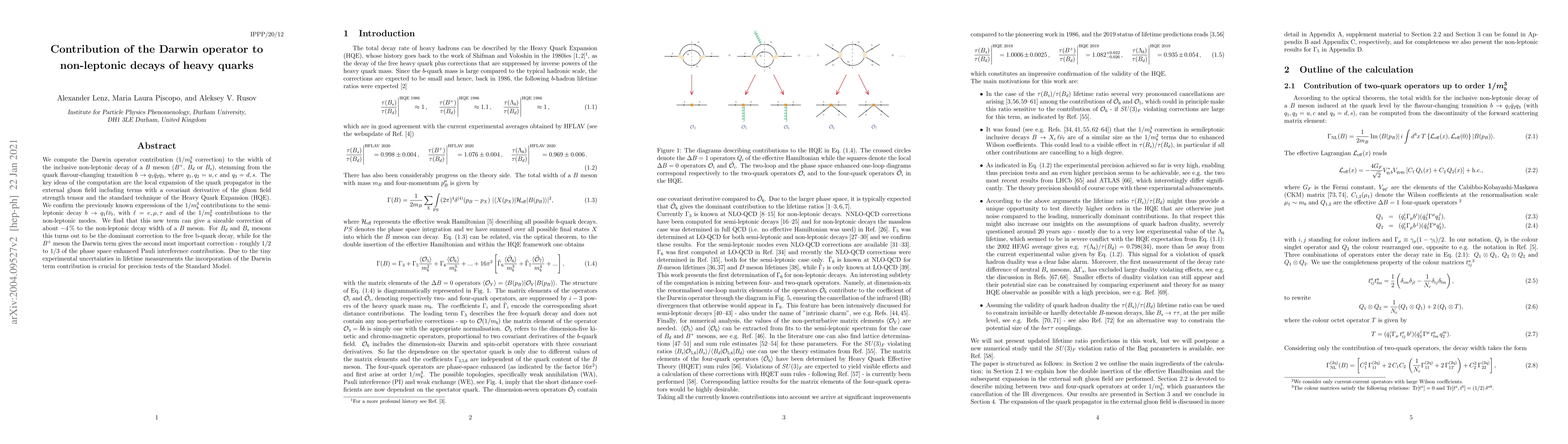 We compute the Darwin operator contribution ($1/m_b^3$ correction) to the width of the inclusive non-leptonic decay of a $B$ meson ($B^+$, $B_d$ or $B_s$), stemming from the quark flavour-changing transition $b \to q_1 \bar q_2 q_3$, where $q_1,q_2 = u, c$ and $q_3 = d, s$. The key ideas of the computation are the local expansion of the quark propagator in the external gluon field including terms with covariant derivative of the gluon field strength tensor and the standard technique of the Heavy Quark Expansion (HQE). We confirm the previously known expressions of the $1/m_b^3$ contributions to the semi-leptonic decay $b \to q_1 \ell \bar \nu_\ell$, with $\ell = e, \mu, \tau$ and of the $1/m_b^2$ contributions to the non-leptonic modes. We find that this new term can give a sizeable correction of about $- 4 \, \%$ to the non-leptonic decay width of a $B$ meson. For $B_d$ and $B_s$ mesons this turns out to be the dominant correction to the free b-quark decay, while for the $B^+$ meson the Darwin term gives the second most important correction - roughly 1/2 to 1/3 of the phase space enhanced Pauli interference contribution. Due to the tiny experimental uncertainties in lifetime measurements the incorporation of the Darwin term contribution is crucial for precision tests of the Standard Model.