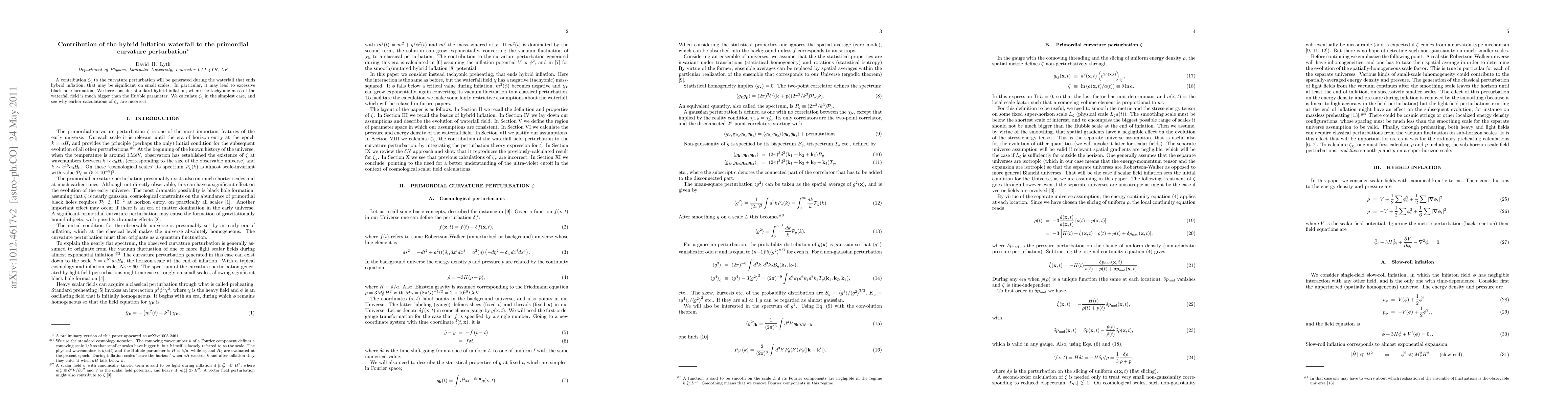 This paper investigates the contribution $\zeta_\chi$ to the primordial curvature perturbation generated during the hybrid inflation waterfall, finding it potentially significant on small scales and potentially leading to excessive black hole formation. The authors correct previous calculations and provide a precise evaluation under standard hybrid inflation conditions.