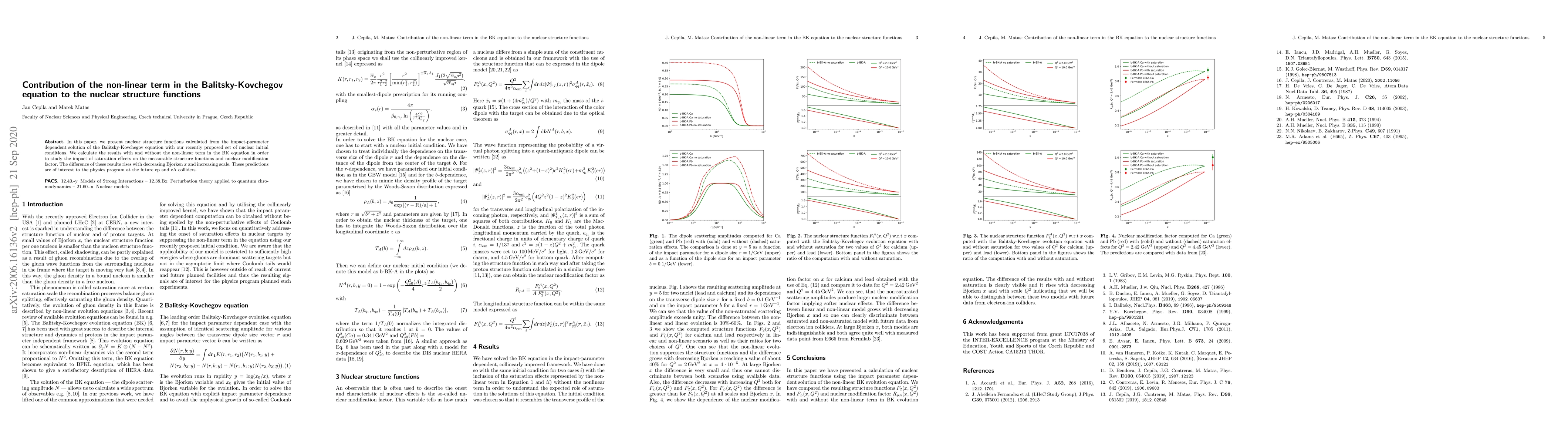 Researchers calculated nuclear structure functions from the Balitsky-Kovchegov equation with and without a non-linear term to study its impact on measurable effects at future colliders.