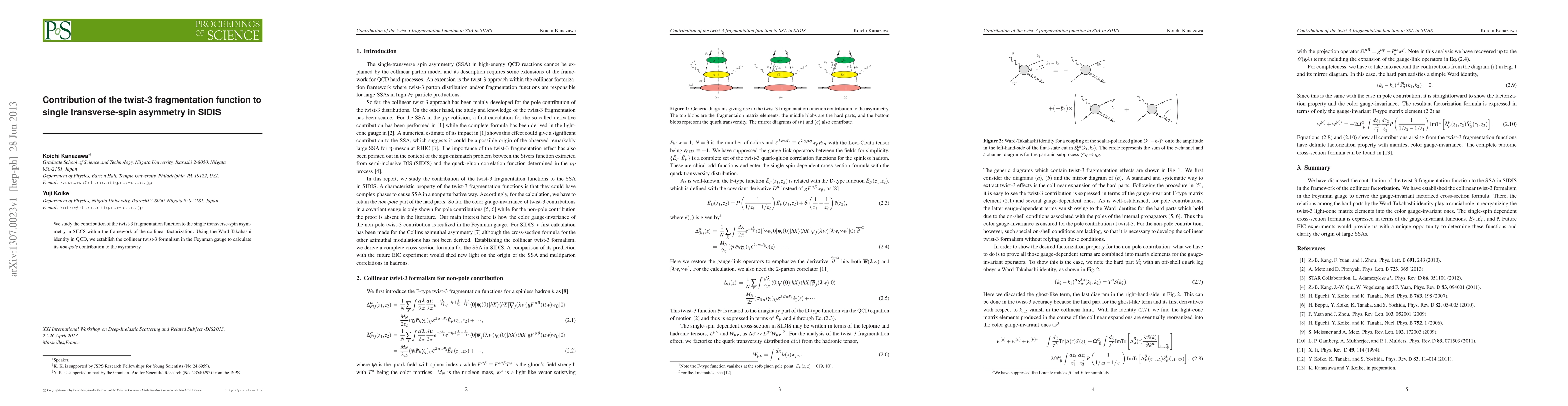 We study the contribution of the twist-3 fragmentation function to the single transverse-spin asymmetry in SIDIS within the framework of the collinear factorization. Using the Ward-Takahashi identity in QCD, we establish the collinear twist-3 formalism in the Feynman gauge to calculate its non-pole contribution to the asymmetry.