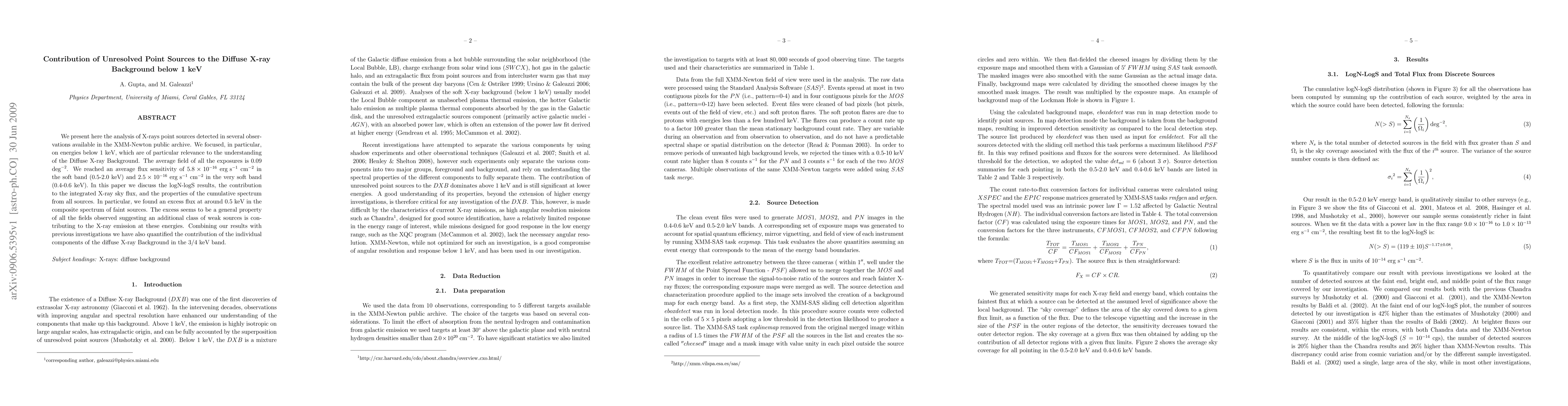 This paper analyzes XMM-Newton data to quantify the contribution of unresolved point sources to the diffuse X-ray background below 1 keV, identifying an excess flux at ~0.5 keV suggesting an additional class of weak sources. The study also quantifies the individual components' contributions to the diffuse X-ray background in the 0.3-4 keV band.