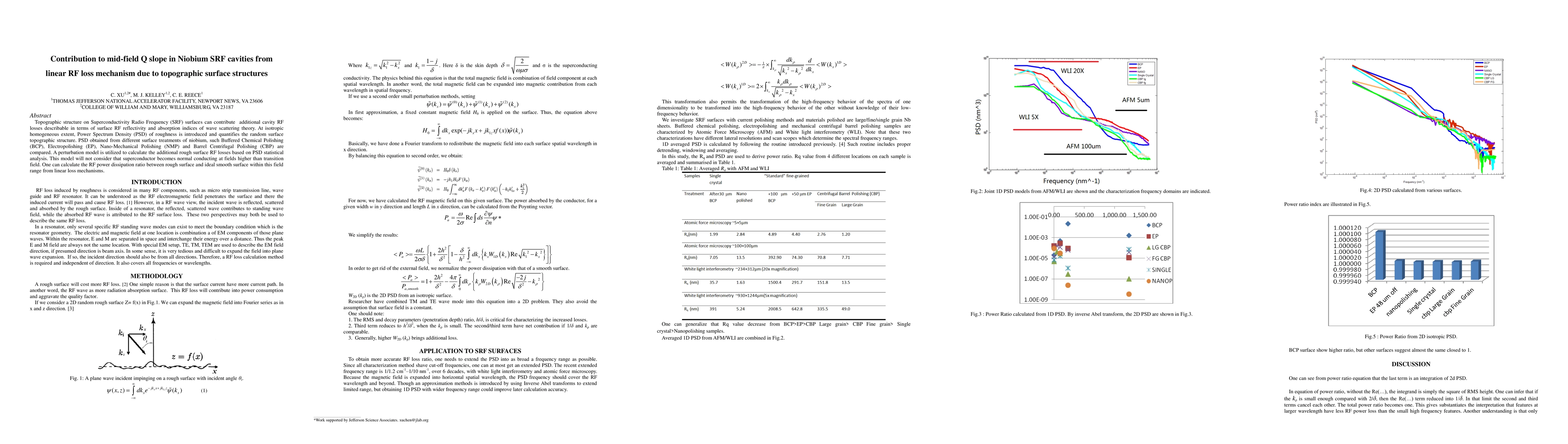 Topographic structure on Superconductivity Radio Frequency (SRF) surfaces can contribute additional cavity RF losses describable in terms of surface RF reflectivity and absorption indices of wave scattering theory. At isotropic homogeneous extent, Power Spectrum Density (PSD) of roughness is introduced and quantifies the random surface topographic structure. PSD obtained from different surface treatments of niobium, such Buffered Chemical Polishing (BCP), Electropolishing (EP), Nano-Mechanical Polishing (NMP) and Barrel Centrifugal Polishing (CBP) are compared. A perturbation model is utilized to calculate the additional rough surface RF losses based on PSD statistical analysis. This model will not consider that superconductor becomes normal conducting at fields higher than transition field. One can calculate the RF power dissipation ratio between rough surface and ideal smooth surface within this field range from linear loss mechanisms.