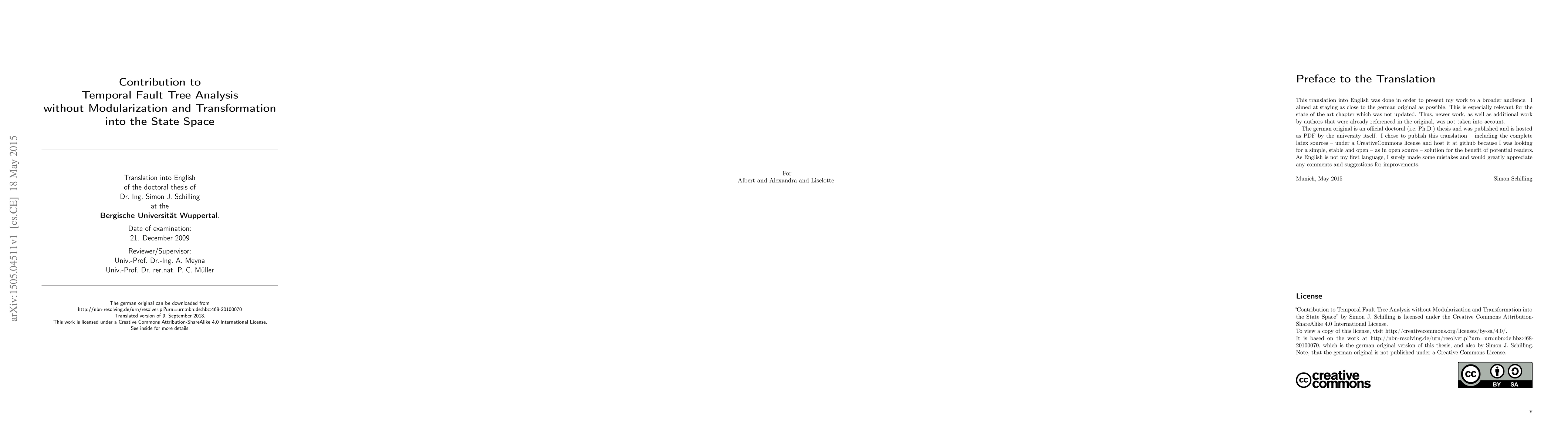 A new method called Temporal Fault Tree Analysis (TFTA) extends Boolean FTA to model sequence dependencies between fault events without state-space transformations. This allows for qualitative and probabilistic analyses of event sequencies at all levels within a fault tree.