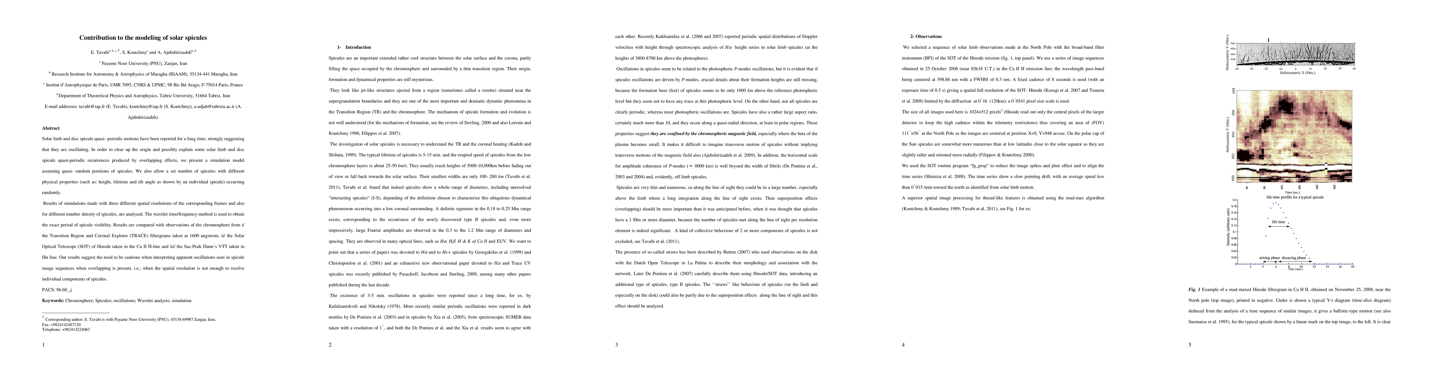 Solar limb and disc spicule quasi- periodic motions have been reported for a long time, strongly suggesting that they are oscillating. In order to clear up the origin and possibly explain some solar limb and disc spicule quasi-periodic recurrences produced by overlapping effects, we present a simulation model assuming quasi- random positions of spicules. We also allow a set number of spicules with different physical properties (such as: height, lifetime and tilt angle as shown by an individual spicule) occurring randomly. Results of simulations made with three different spatial resolutions of the corresponding frames and also for different number density of spicules, are analyzed. The wavelet time/frequency method is used to obtain the exact period of spicule visibility. Results are compared with observations of the chromosphere from i/ the Transition Region and Coronal Explorer (TRACE) filtergrams taken at 1600 angstrom, ii/ the Solar Optical Telescope (SOT) of Hinode taken in the Ca II H-line and iii/ the Sac-Peak Dunn's VTT taken in H{\alpha} line. Our results suggest the need to be cautious when interpreting apparent oscillations seen in spicule image sequences when overlapping is present, i.e.; when the spatial resolution is not enough to resolve individual components of spicules.