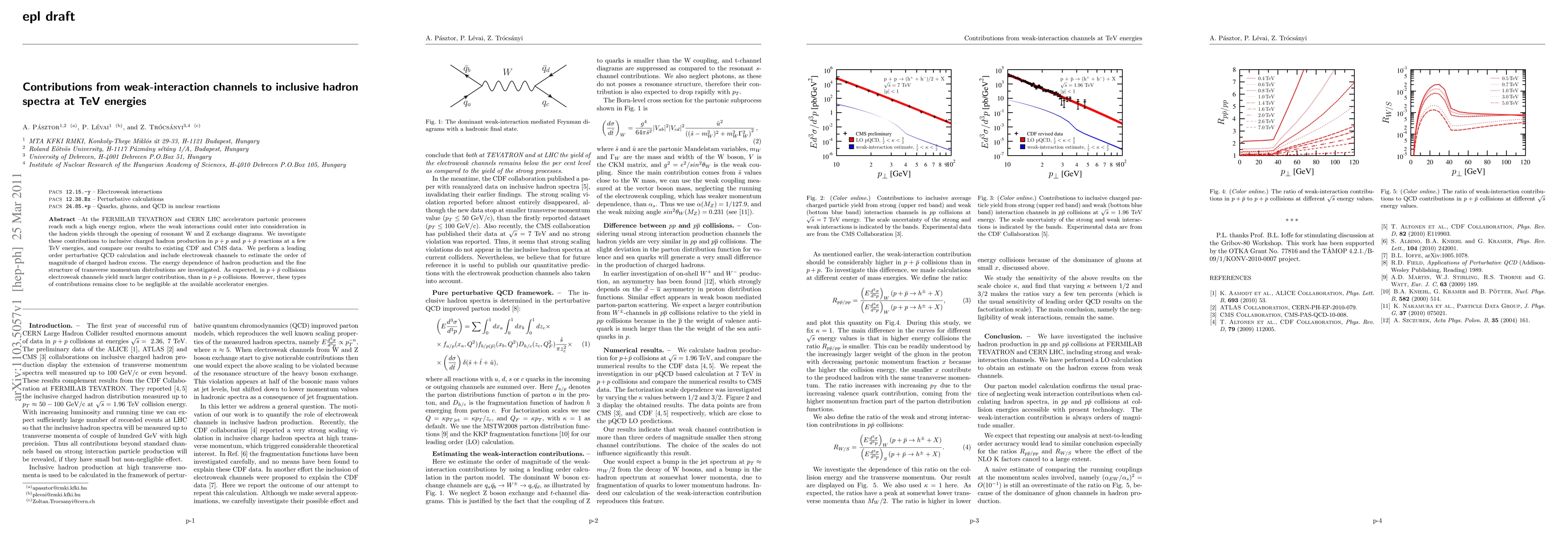 The work addresses the role of electroweak channels in hadron production at TeV energies, contributing to the theoretical understanding of scaling violations reported in earlier CDF data, although recent reanalysis of CDF and CMS data shows no significant strong scaling violations.